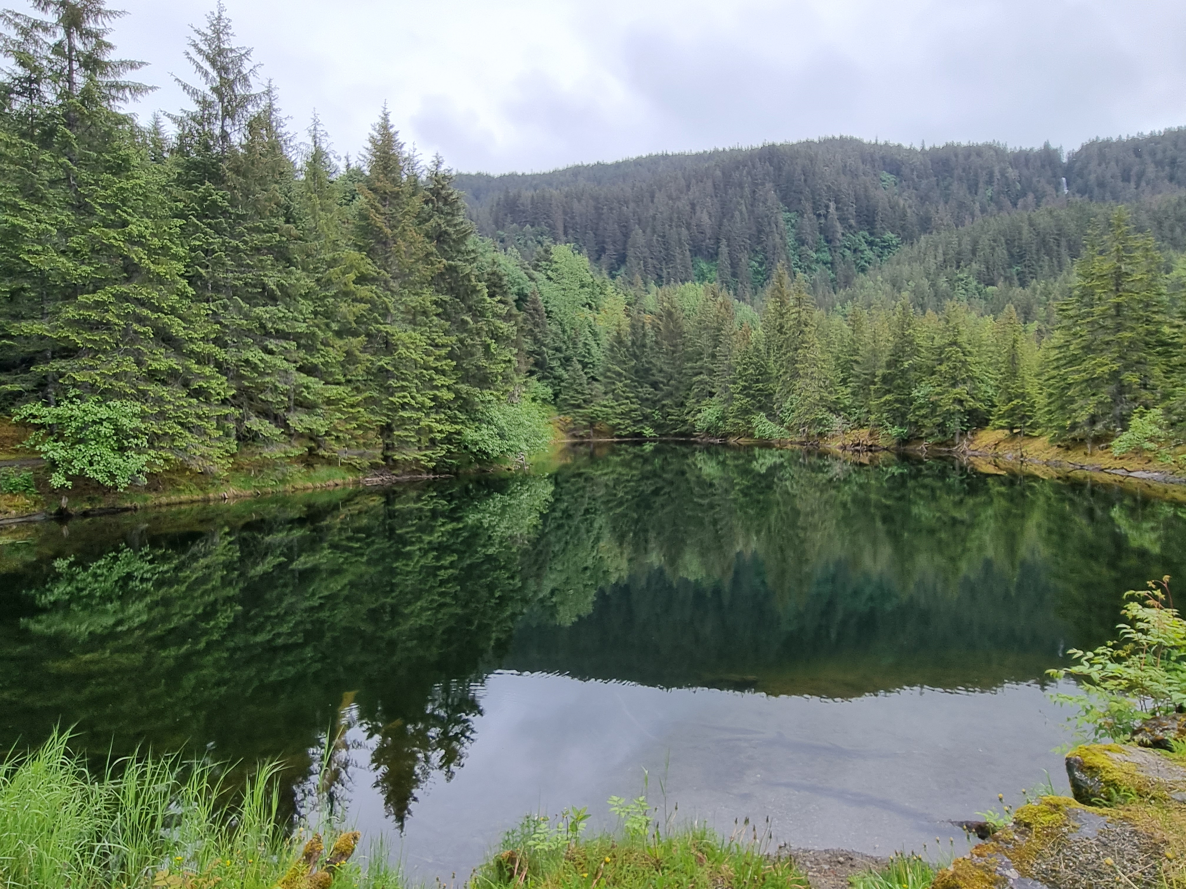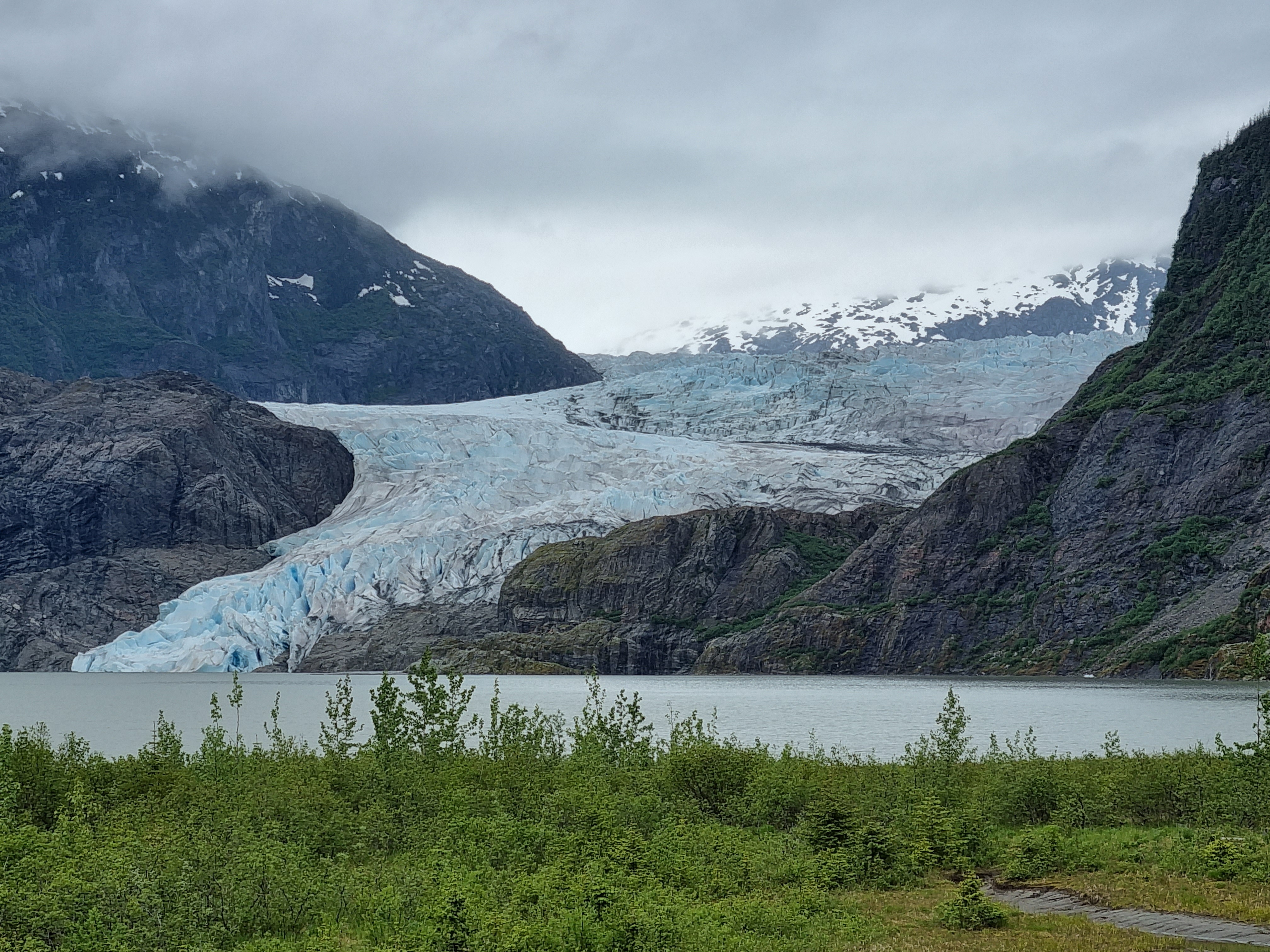Lá, a principal atração é o Mendenhall Glacier, que foi o que fizemos no primeiro dia. Do centro de visitantes já é possível ver a geleira, mas também há algumas trilhas para se fazer, como a que leva a Nugget Fall. Em poucas horas você tem um bom panorama do local.