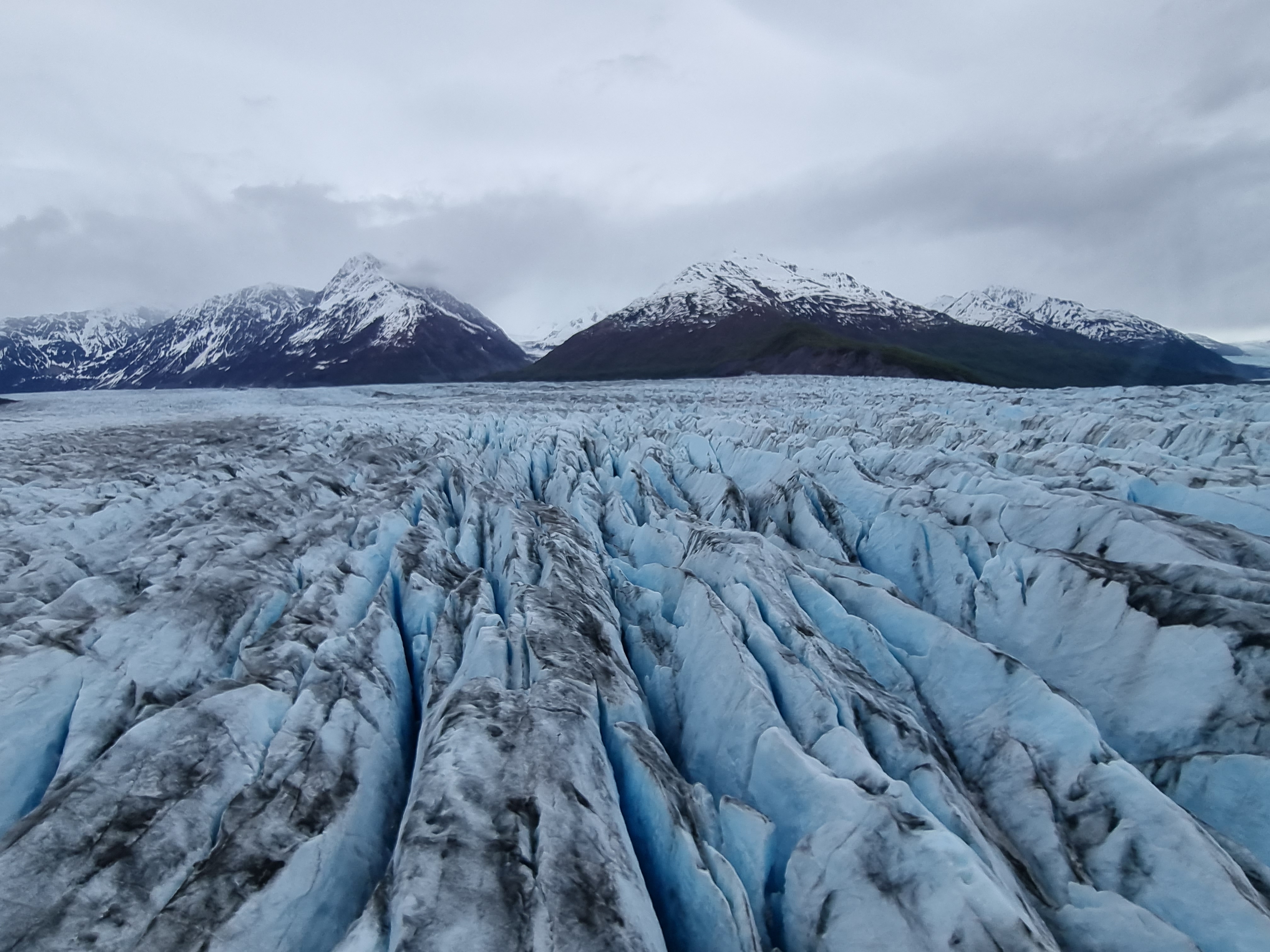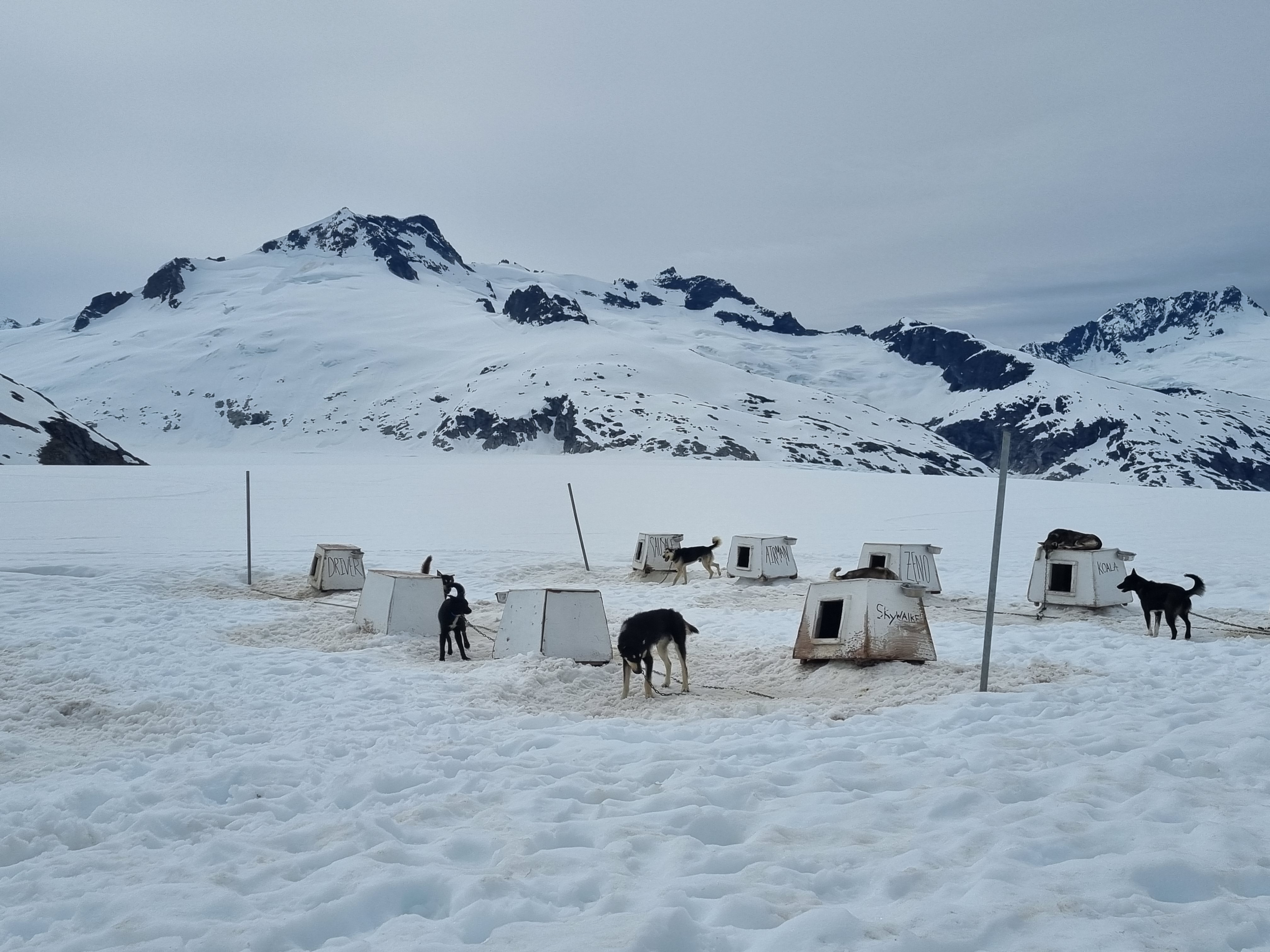 No próximo dia fizemos um passeio de helicóptero pela geleira. A primeira parada fizemos um passeio de trenó puxados por huskies (dogsled), que é uma atividade bem popular no Alasca. Apesar de ser algo típico da cultura do local e do lugar ser lindo, eu não faria de novo. Fiquei com pena dos cães. A segunda parada foi em um ponto mais alto da geleira. O local é realmente muito impressionante e nos fez sentir que encontramos o que fomos buscar na viagem. O Alasca como imaginávamos.