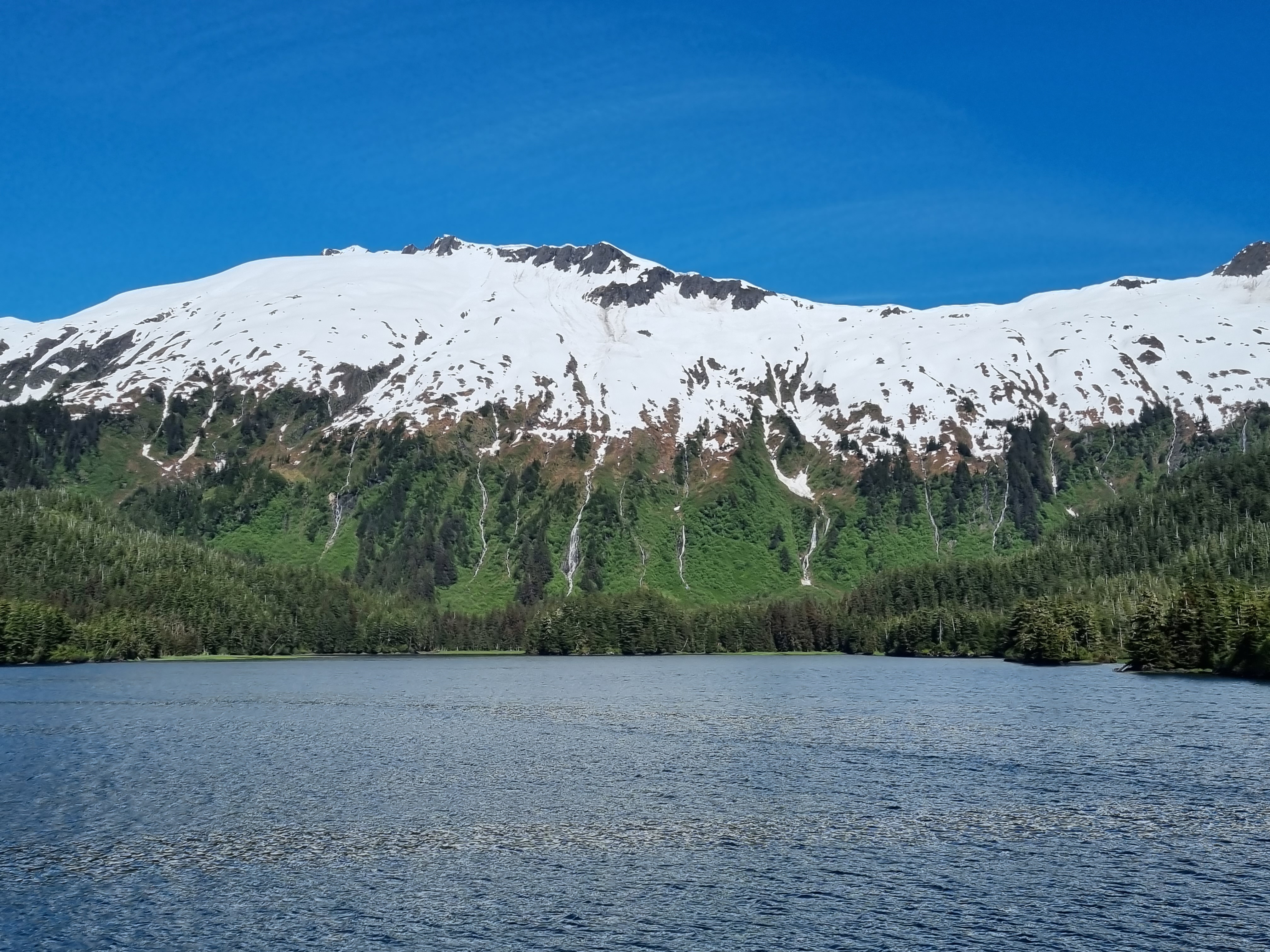 No segundo dia em Juneau iríamos passar o dia navegando no Tracy Arm Fjord, mas tivemos muito azar com a empresa, que há uma semana estava cancelando todos os passeios (em resumo, estavam em falência e não honraram os compromissos). Infelizmente não conseguimos reagendar com outra companhia e ficamos sem conhecer o Tracy Arm. Bom, depois de passarmos pelos estágios de choque, raiva e tristeza, resolvemos aproveitar o dia de outra forma. Contratamos, ali no porto mesmo, um passeio de barco para visualização de baleias. Vimos várias baleias e aqui é importante que se diga: binóculos e, se possível, uma câmera com bom zoom ajudam bastante no Alasca.