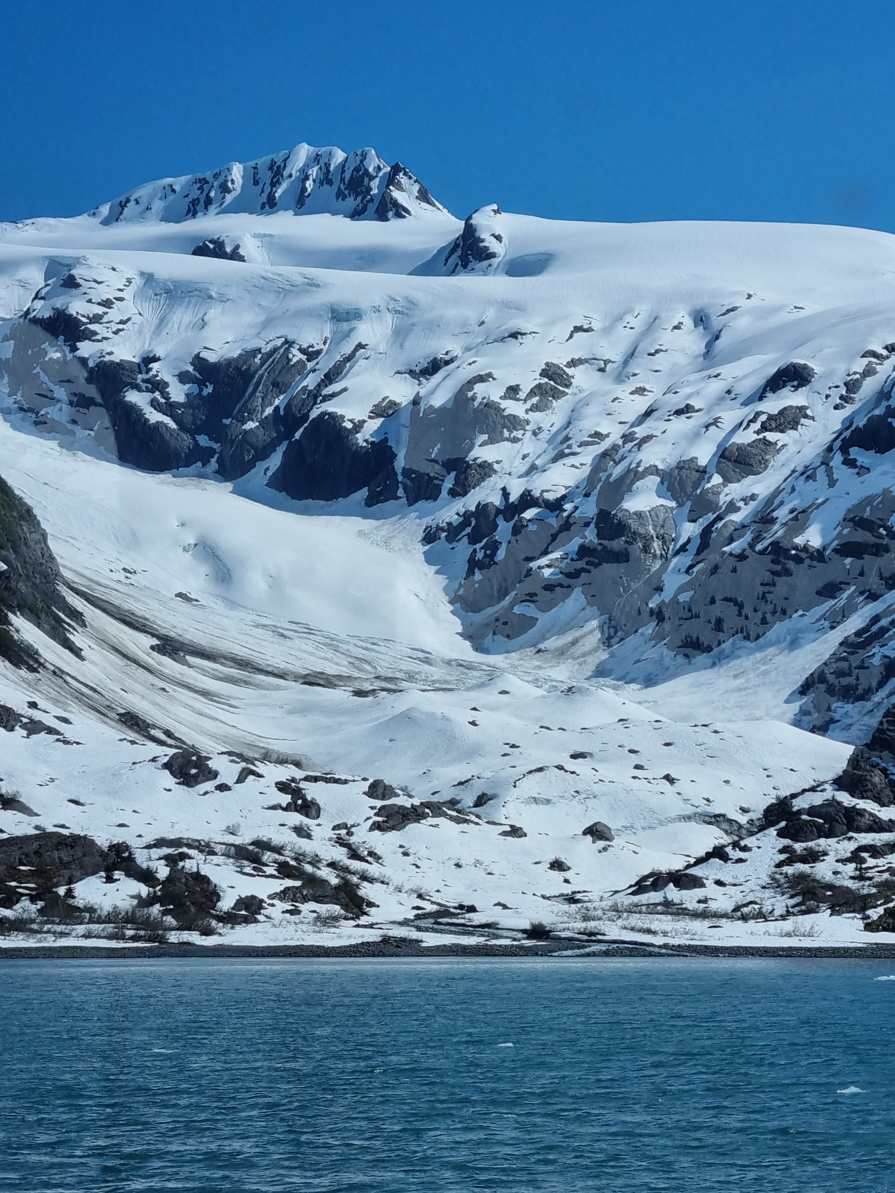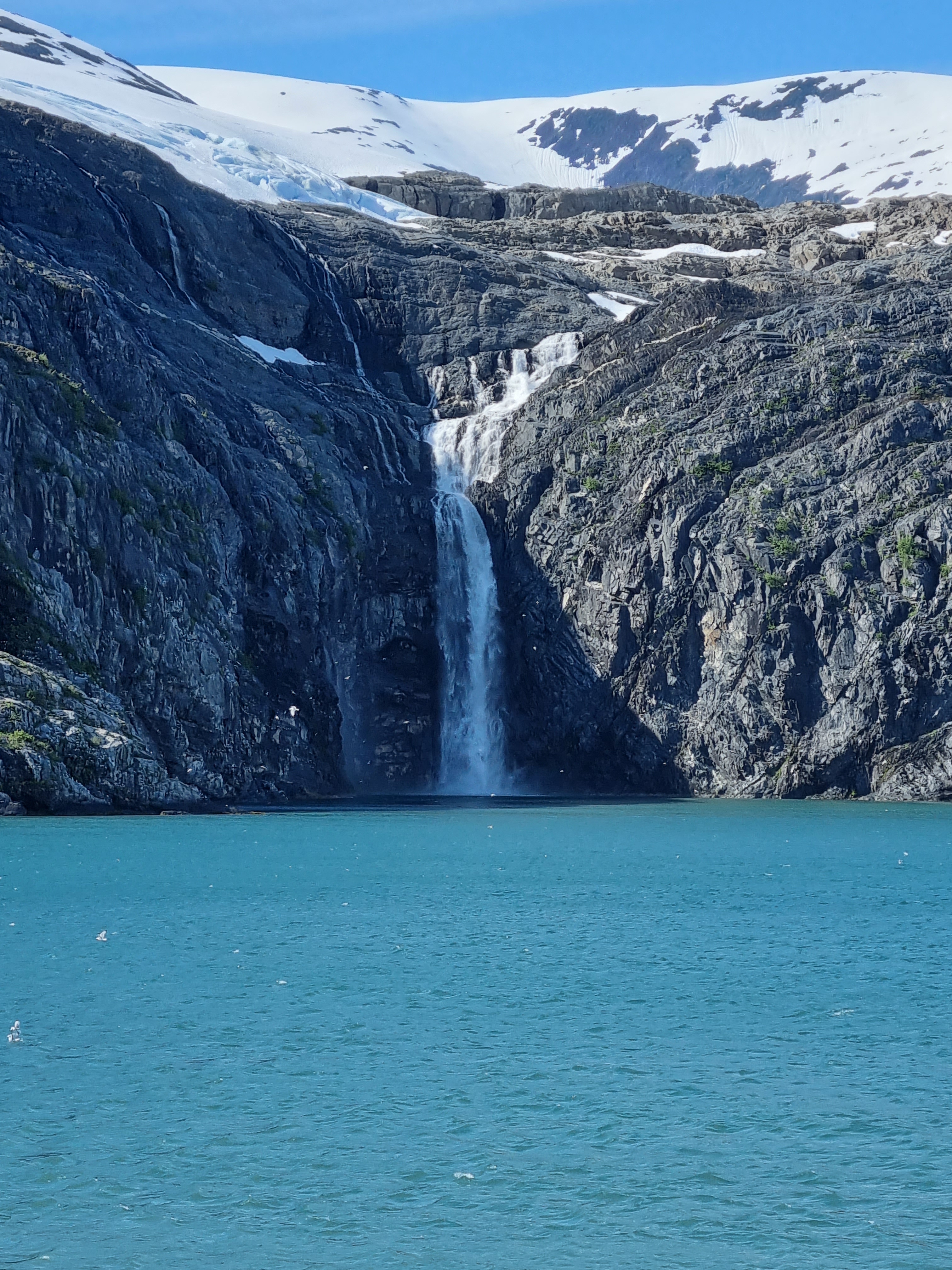 Em Whittier fizemos um passeio de barco, de meio dia, que passa por 26 glaciares. Aqui, pela segunda vez demos muita sorte. Mais um dia de sol pleno, sem nuvens no céu. Assim, tivemos mais um dia de paisagens incríveis. Aqui, em nossa opinião, vimos os glaciares mais impressionantes, acompanhados de cachoeiras, icebergs, pássaros e focas compondo o cenário.