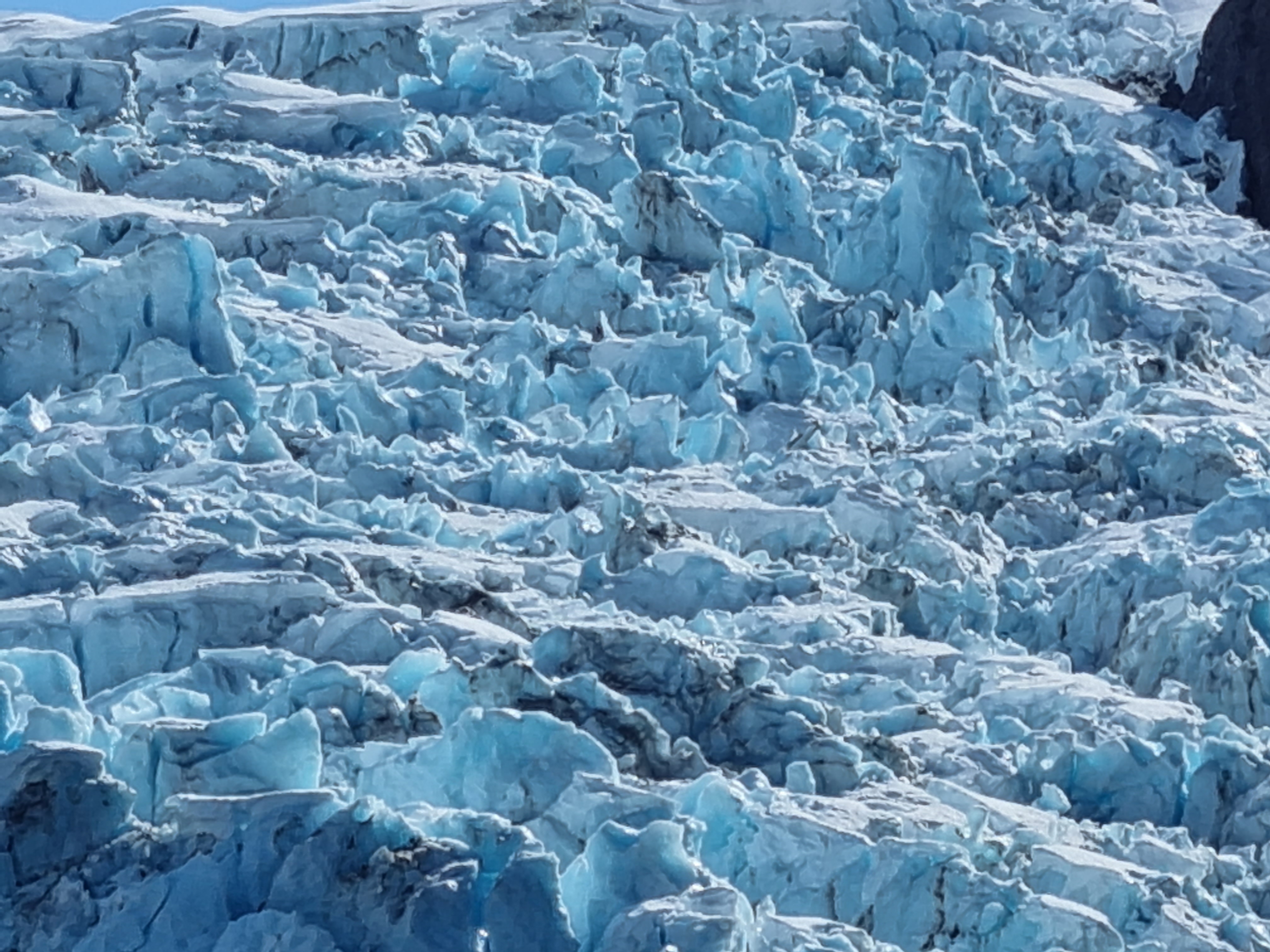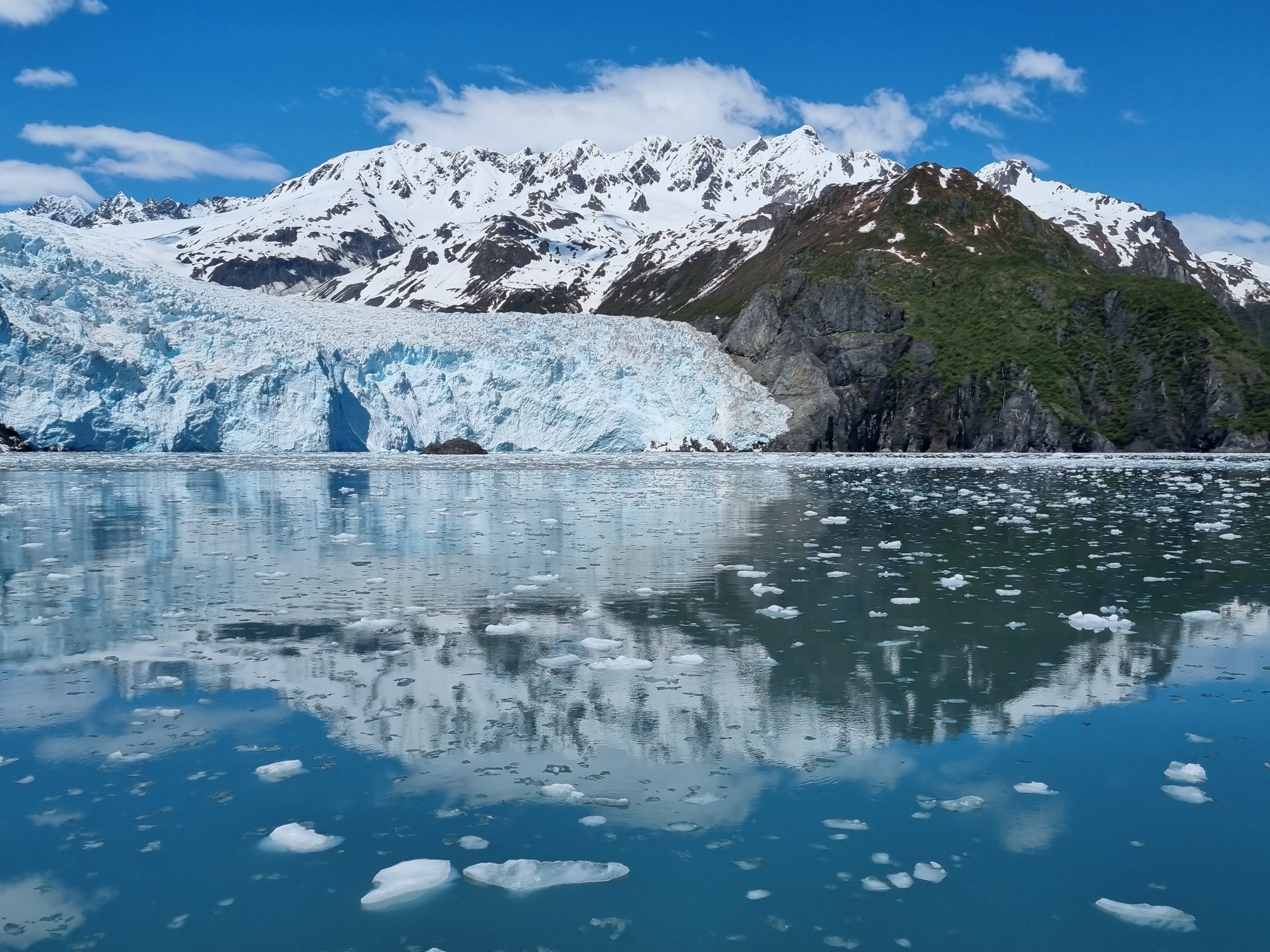O dia seguinte foi ocupado por um passeio de barco, de dia todo, no Kenai Fjords National Park. Escolhemos um passeio de 7,5h e não nos cansamos. Aqui começou uma maré de sorte: o dia estava lindo, sem nenhuma nuvem, o que é raro e tornou tudo muito especial. O cenário é incrível, vimos muitos bichos, como focas, baleias, puffins, águias e até um urso. Infelizmente, como estávamos sem uma câmera com zoom potente, estas cenas ficarão apenas na nossa memória, sem spoiler.