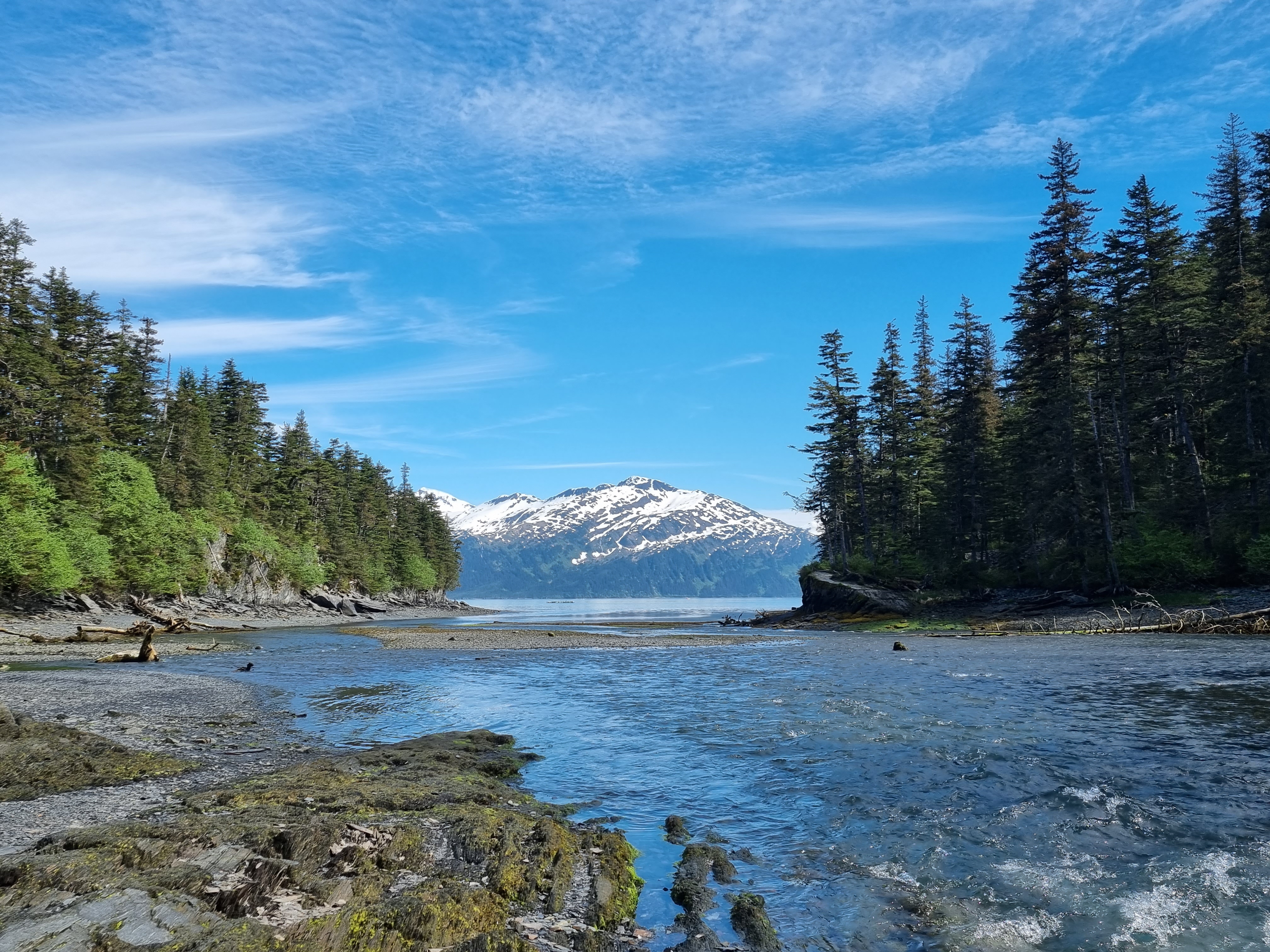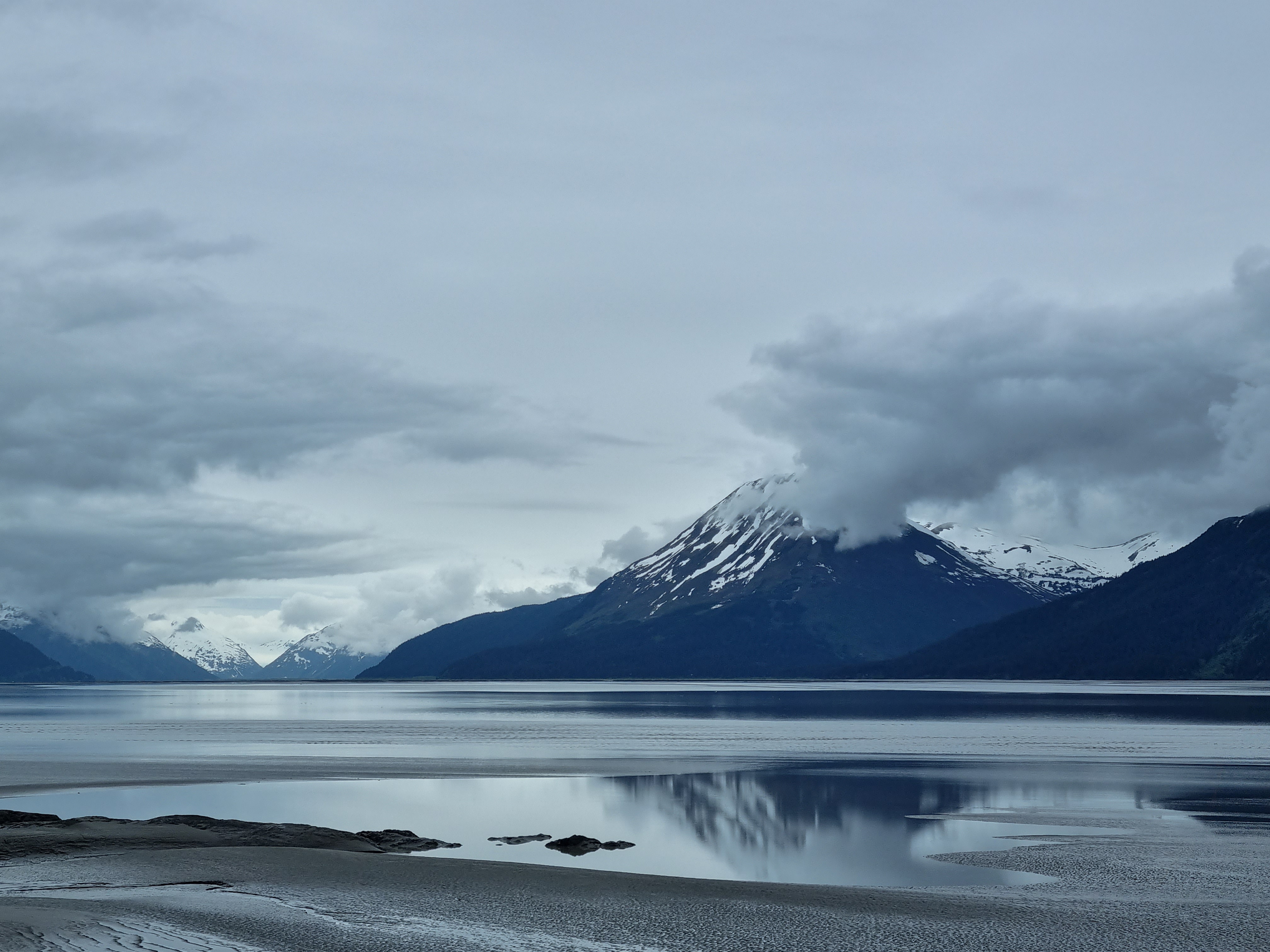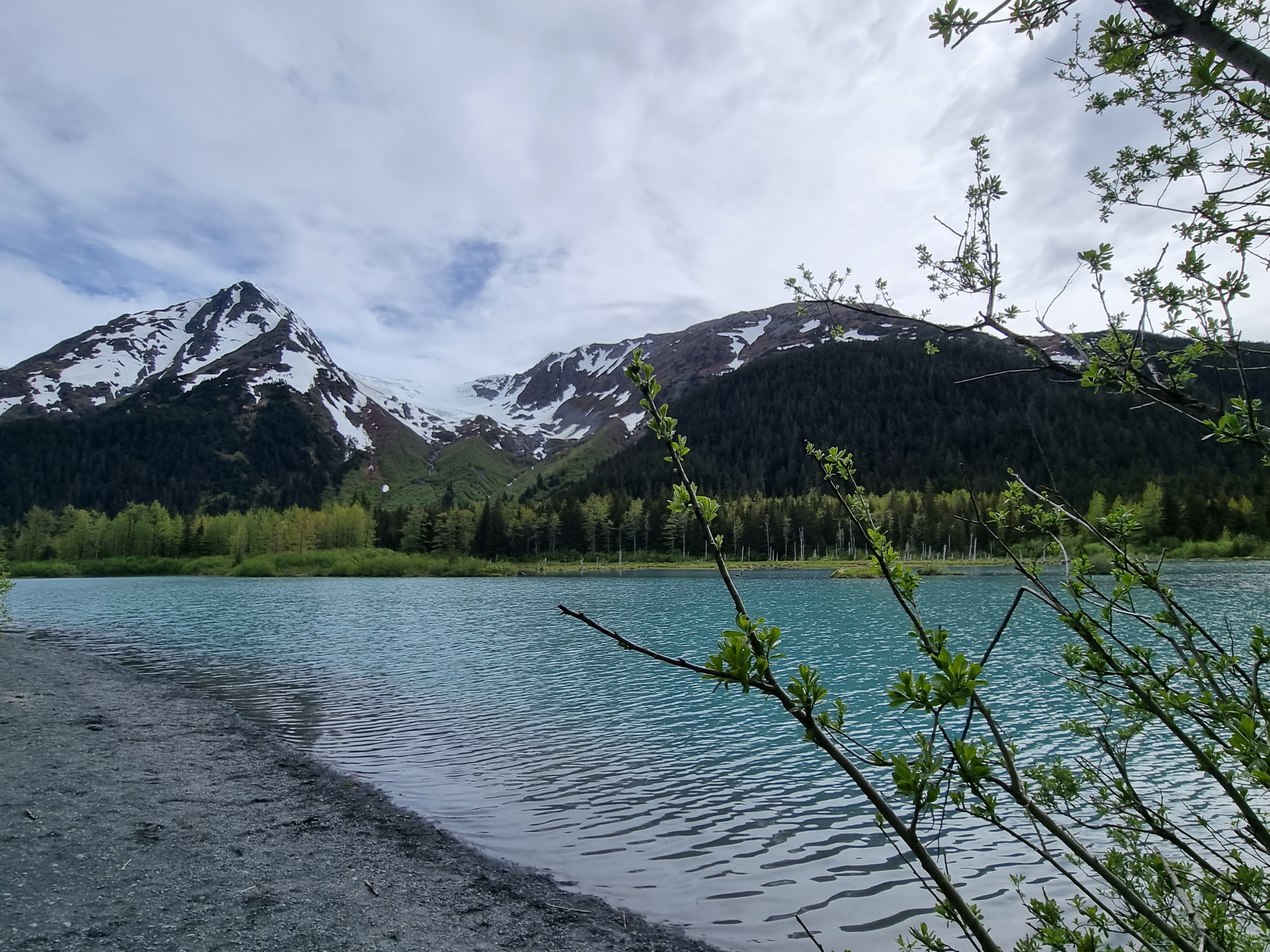 O dia seguinte seria de trajeto, mas é claro que não seria não qualquer trajeto. O passeio foi a própria estrada, porque iríamos atravessar a rota cênica entre Anchorage e Seward. Além do próprio visual da estrada, há muitas paradas possíveis. No nosso caso, como não tínhamos tempo para longas caminhadas, fomos parando no acostamento da própria estrada, para curtir o visual. Fizemos uma única parada mais longa, em um centro de recuperação de animais.