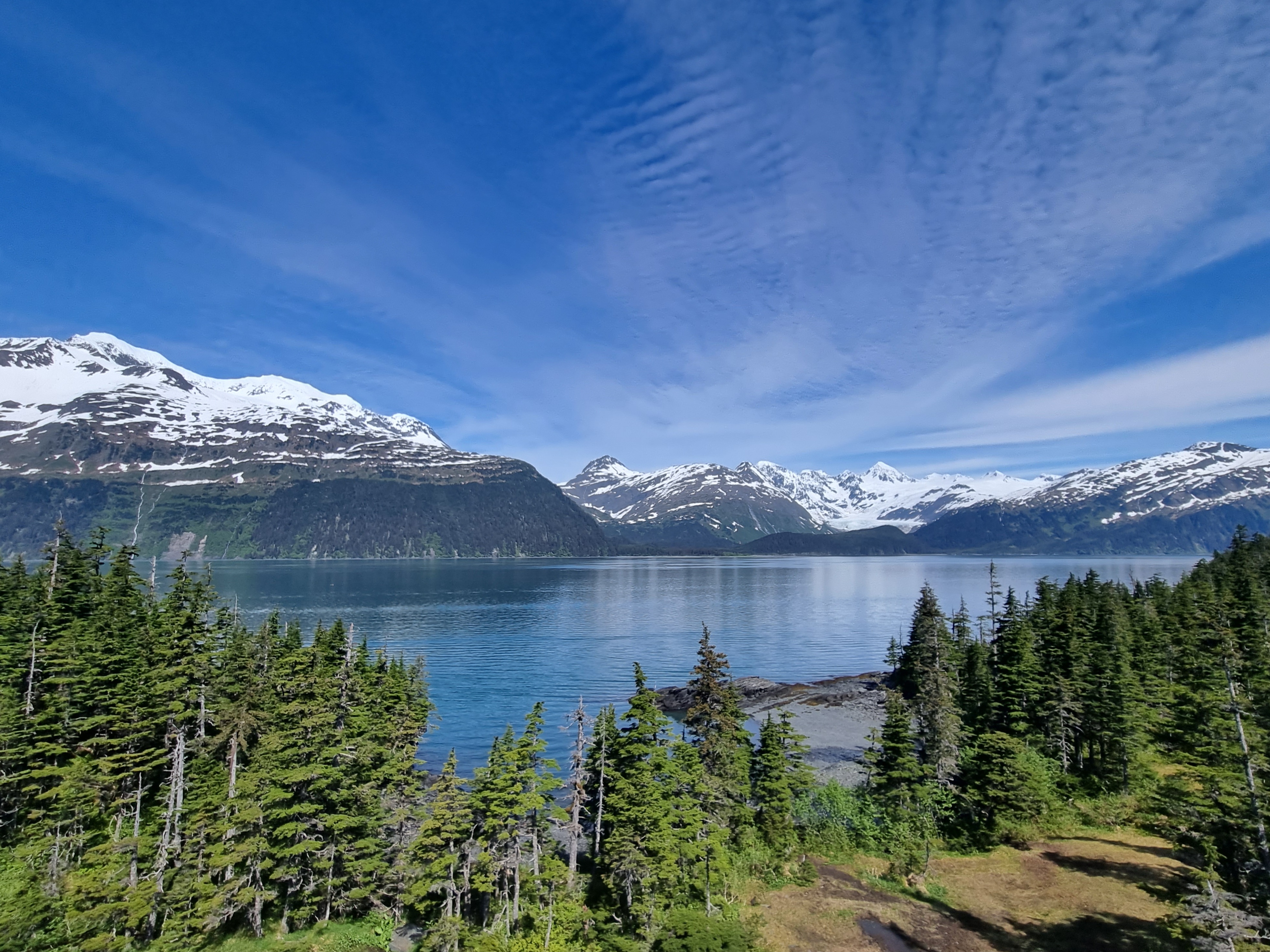 A balsa entre Whittier e Valdez atravessa a baía de Prince William Sound e a viagem dura 6h. A balsa também leva carros, o que para nós foi fundamental. Nada de dormir durante a travessia porque o trajeto, para variar, é belíssimo.