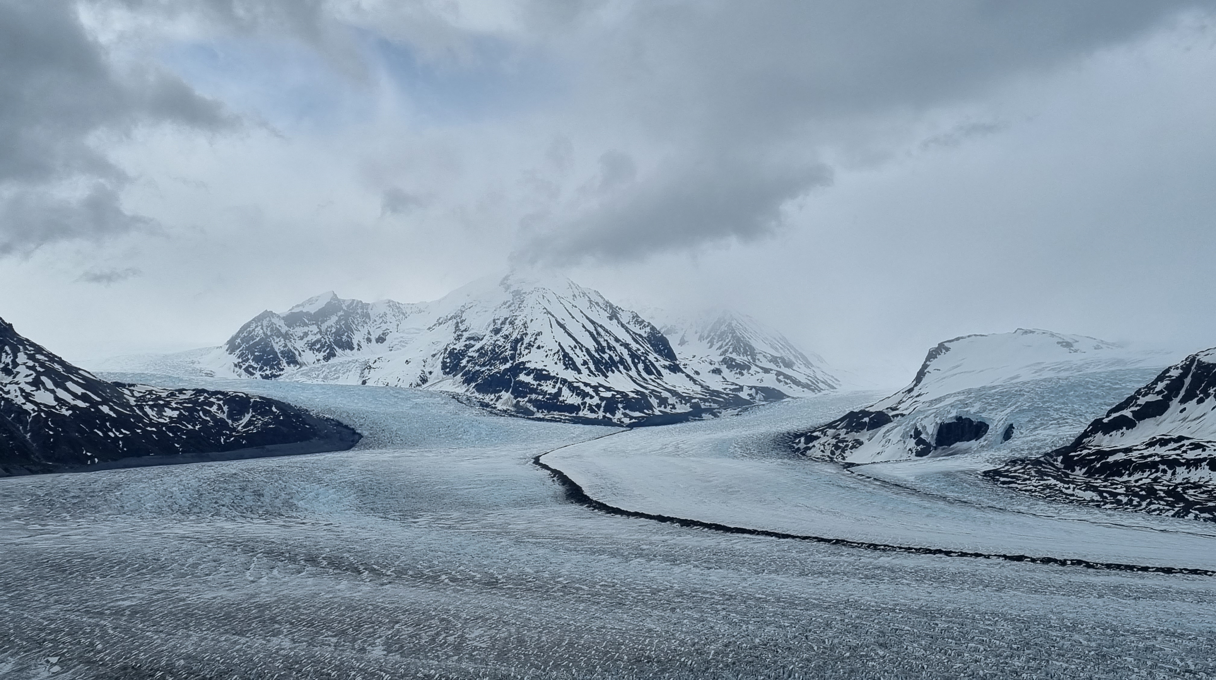 Fizemos o trecho Juneau – Anchorage por vôo. Nossa passagem pela cidade mais populosa do Alaska foi muito rápida. Chegamos por volta da hora do almoço e já saímos para um dos passeios mais esperados: um vôo de helicóptero pelo Knik Glacier, com três paradas. E pronto, se tínhamos alguma dúvida de que realmente o Alasca merecia estar no topo das nossas intenções de viagem e de que valeria cada centavo gasto (diga-se de passagem, não é um destino barato), a resposta veio a galope, digo, de helicóptero… rs… Este passeio é digno de deixar qualquer um sem palavras, apenas impressionada por estar diante de um local tão majestoso. Enorme, silencioso, imponente e arrebatador. Momentos que valem uma vida.