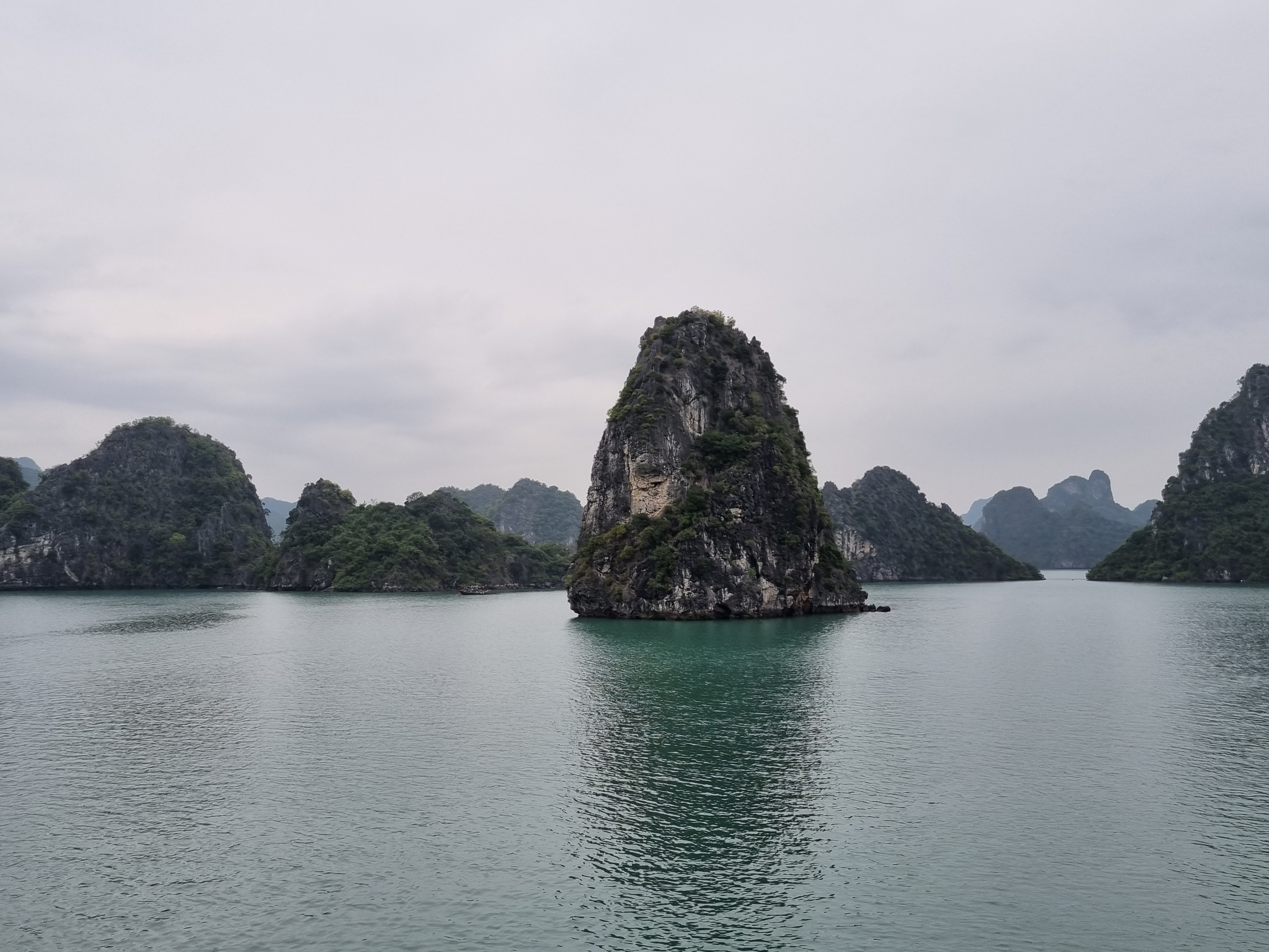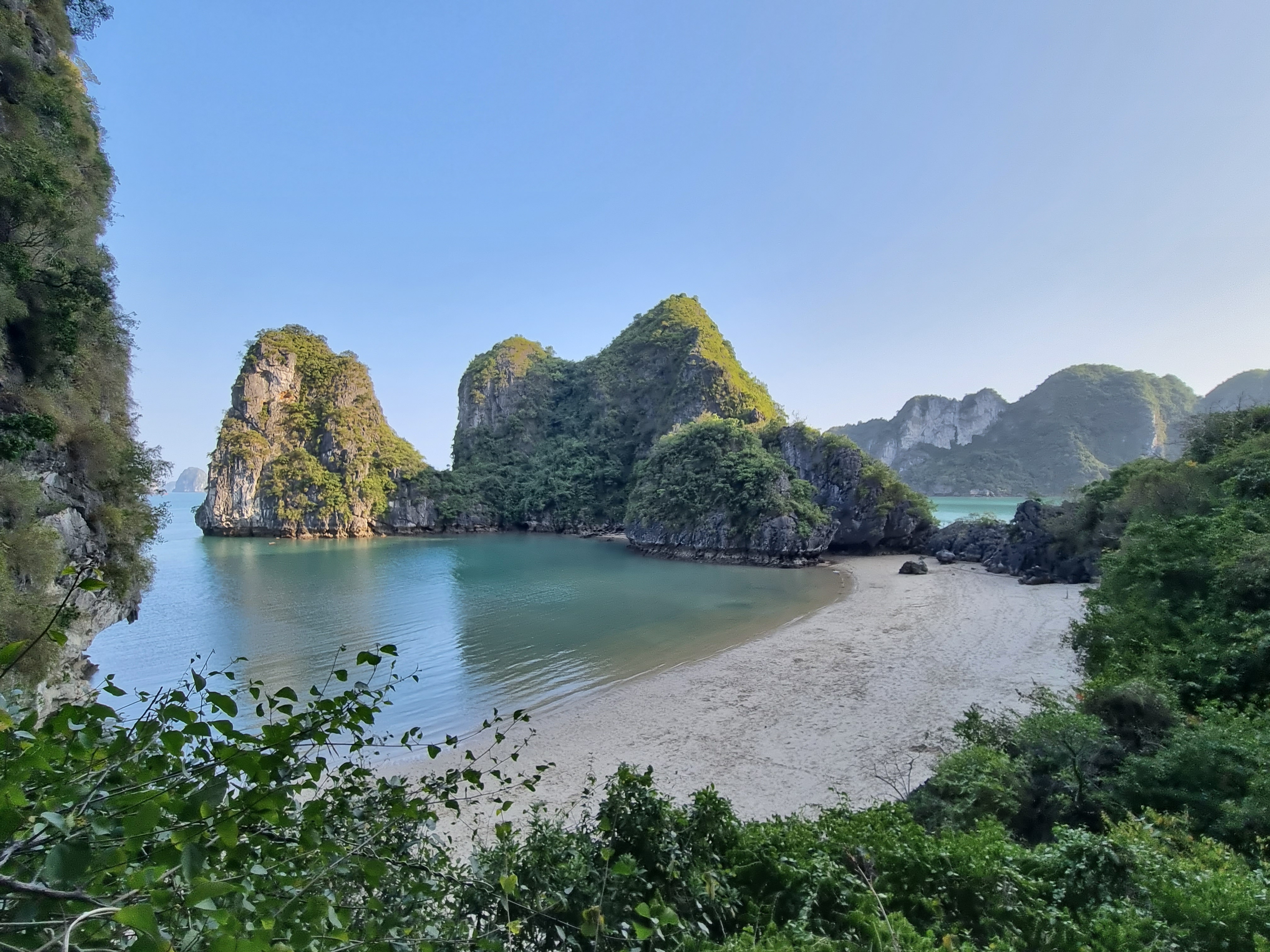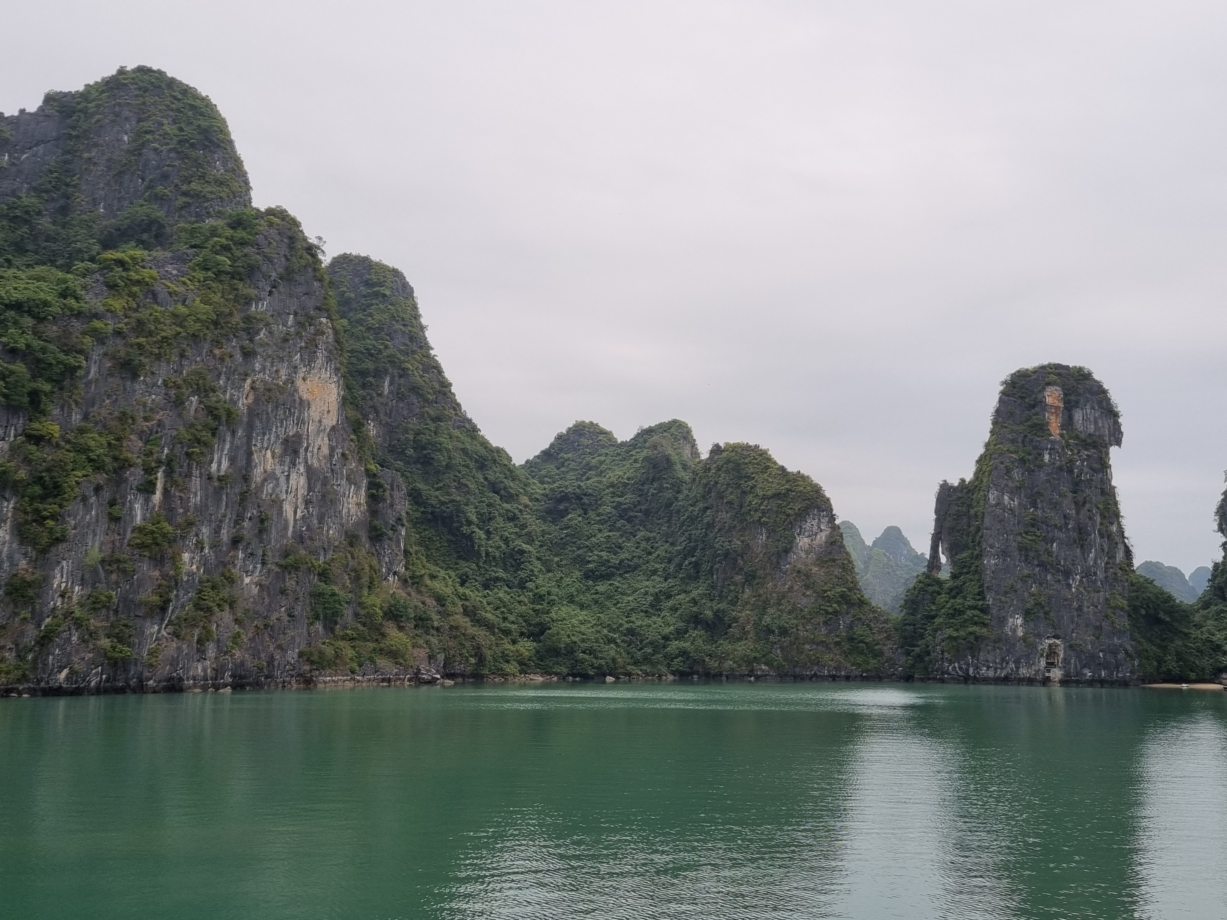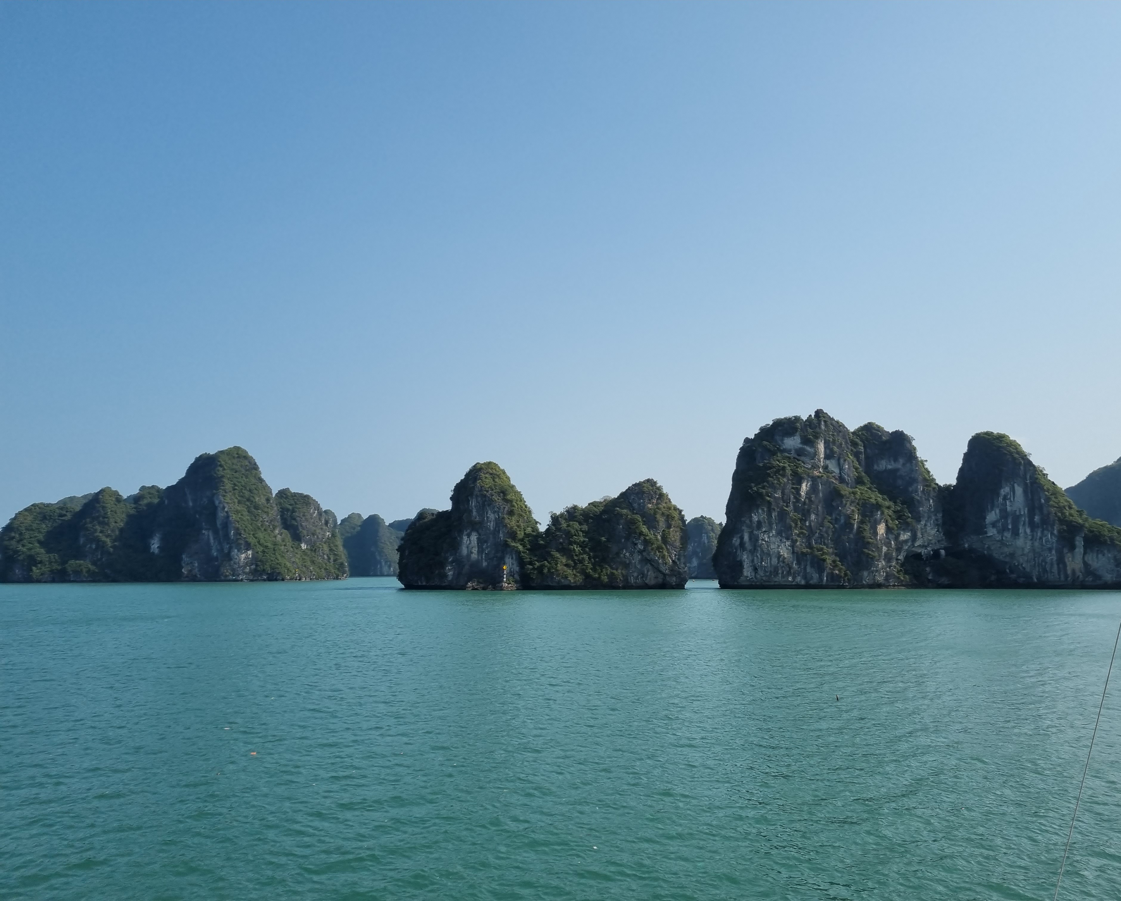 No dia seguinte saímos de ônibus rumo a Halong Bay. Grande expectativa. O passeio de barco pela baía saiu no começo da tarde e retornou na manhã seguinte. Foi mágico andar de caiaque, curtir uma praia, navegar e pernoitar em um lugar tão lindo.