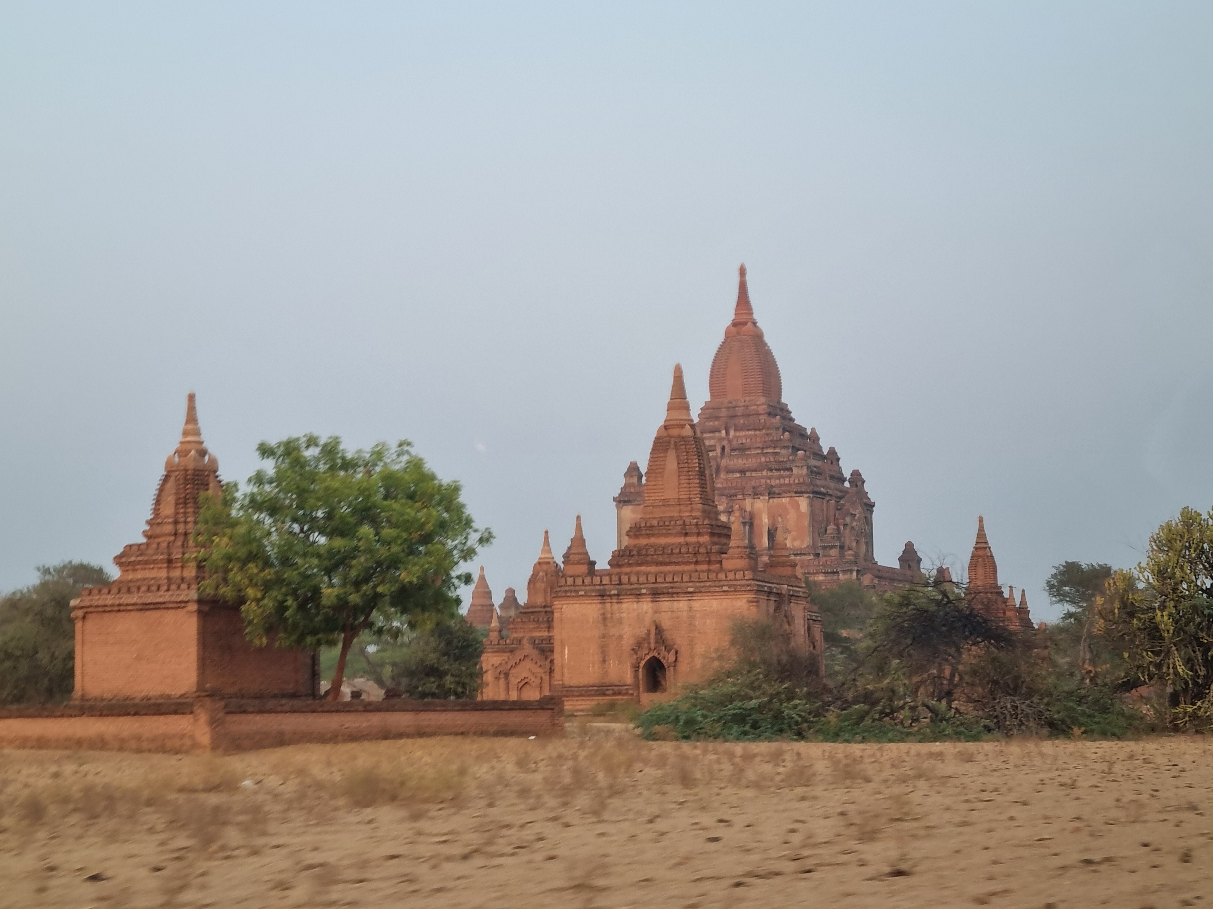 No próximo dia, um motorista iria me levar de carro até Bagan, trajeto que durou o dia todo. Fui orientada que pararíamos pra comer “onde fosse possível encontrar um restaurante”. Assim foi. De tempos em tempos havia uma barreira policial e o motorista precisava apresentar documentação e dar explicações sobre mim. Em nenhum momento fui questionada ou fui tratada com estranhamento ou rispidez. Eles nem olhavam pra mim.