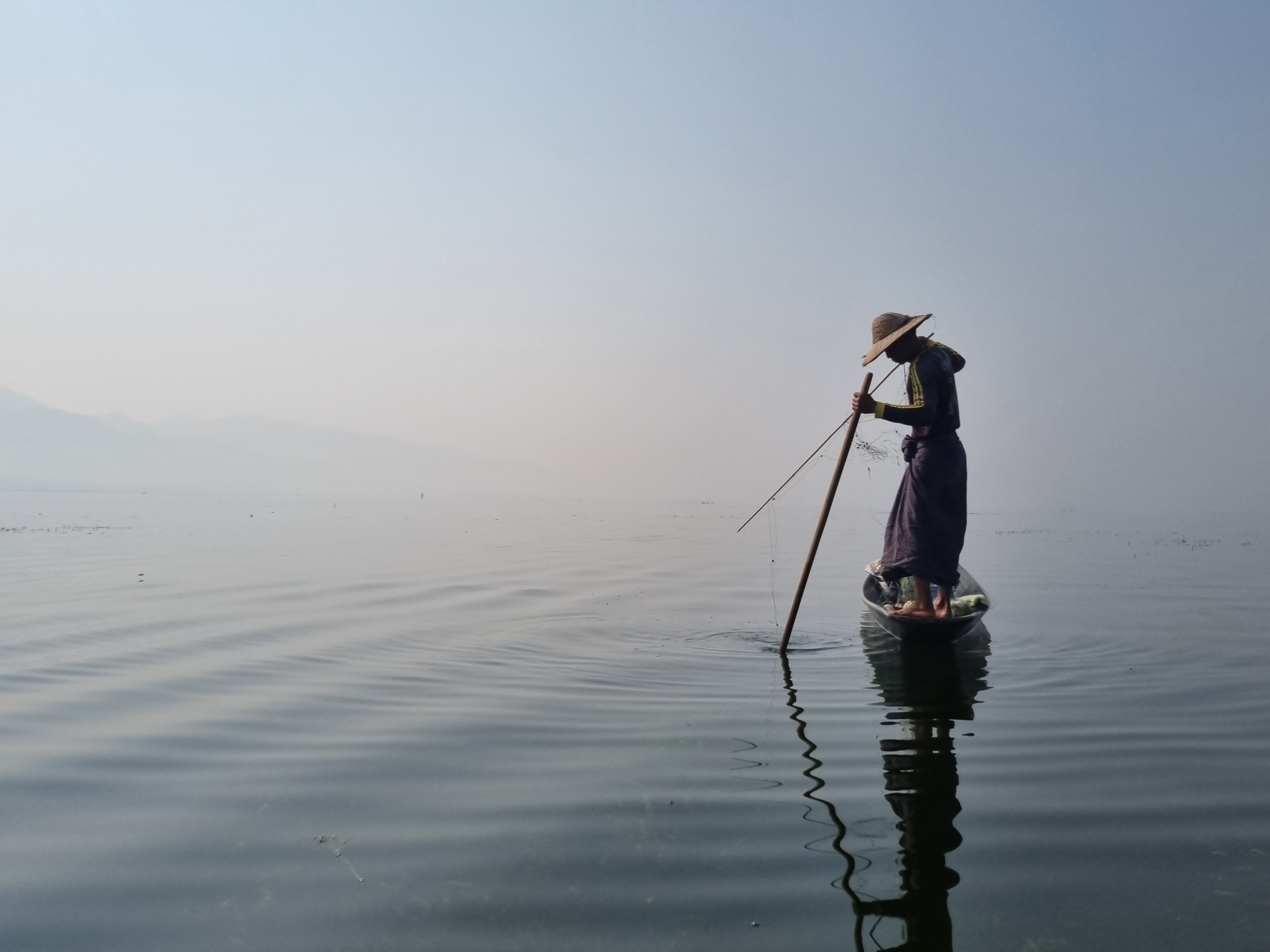 No outro dia, bem de manhãzinha já estávamos no lago. Novamente minha expectativa foi muito superada. Lago enorme, um silêncio absoluto. Sem turistas, só a vida local acontecendo. Alguns pescadores com sua técnica típica, as comunidades palafitas, os moradores indo e vindo de barco, a feira local. Uma sensação de que ali o tempo passava mais devagar. No lago, o estresse do país em guerra foi se esvaindo e eu só senti paz. Por fim, em 3 semanas viajando por 4 países, foi neste local, localizado em um país em guerra, que eu mais me senti em paz.