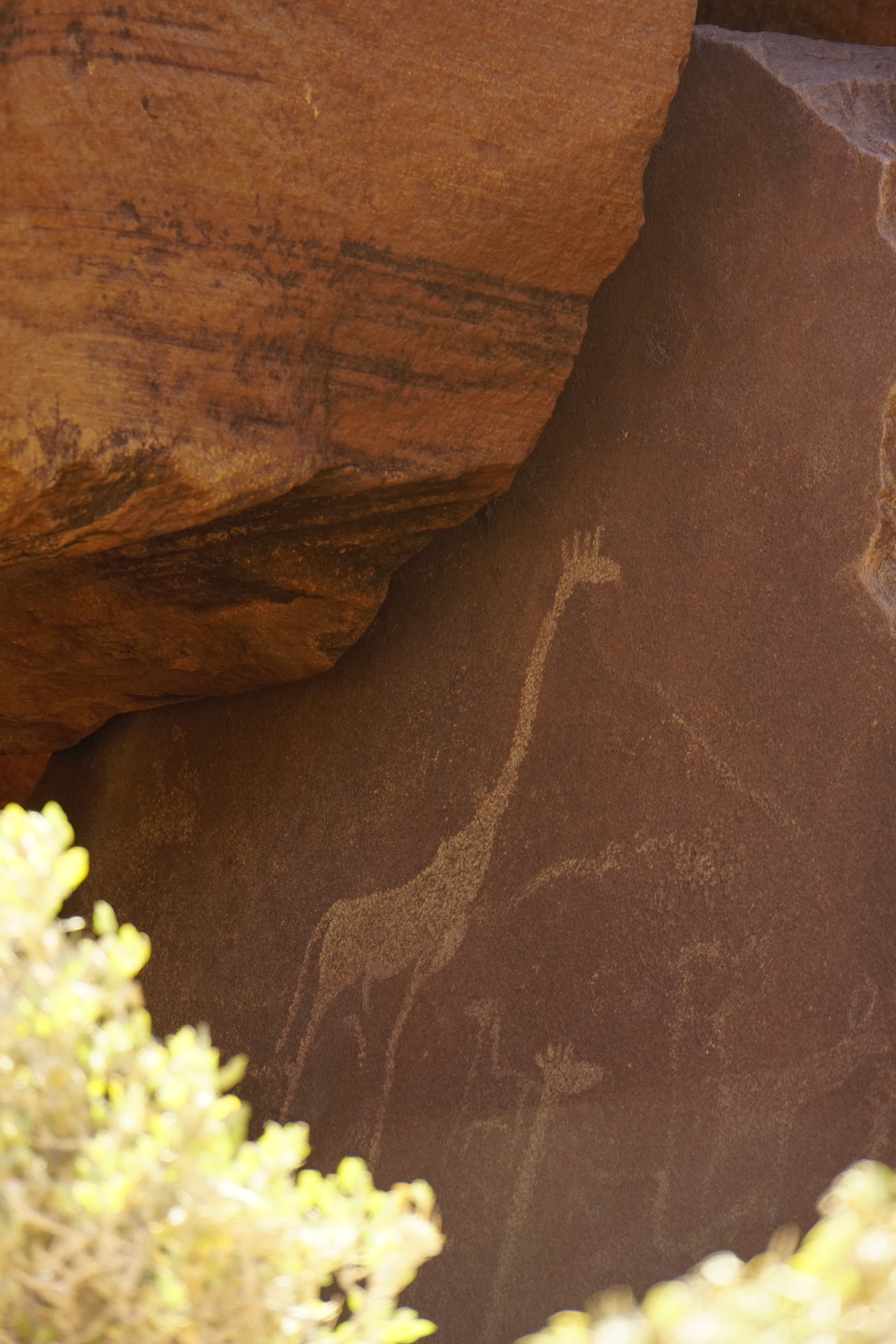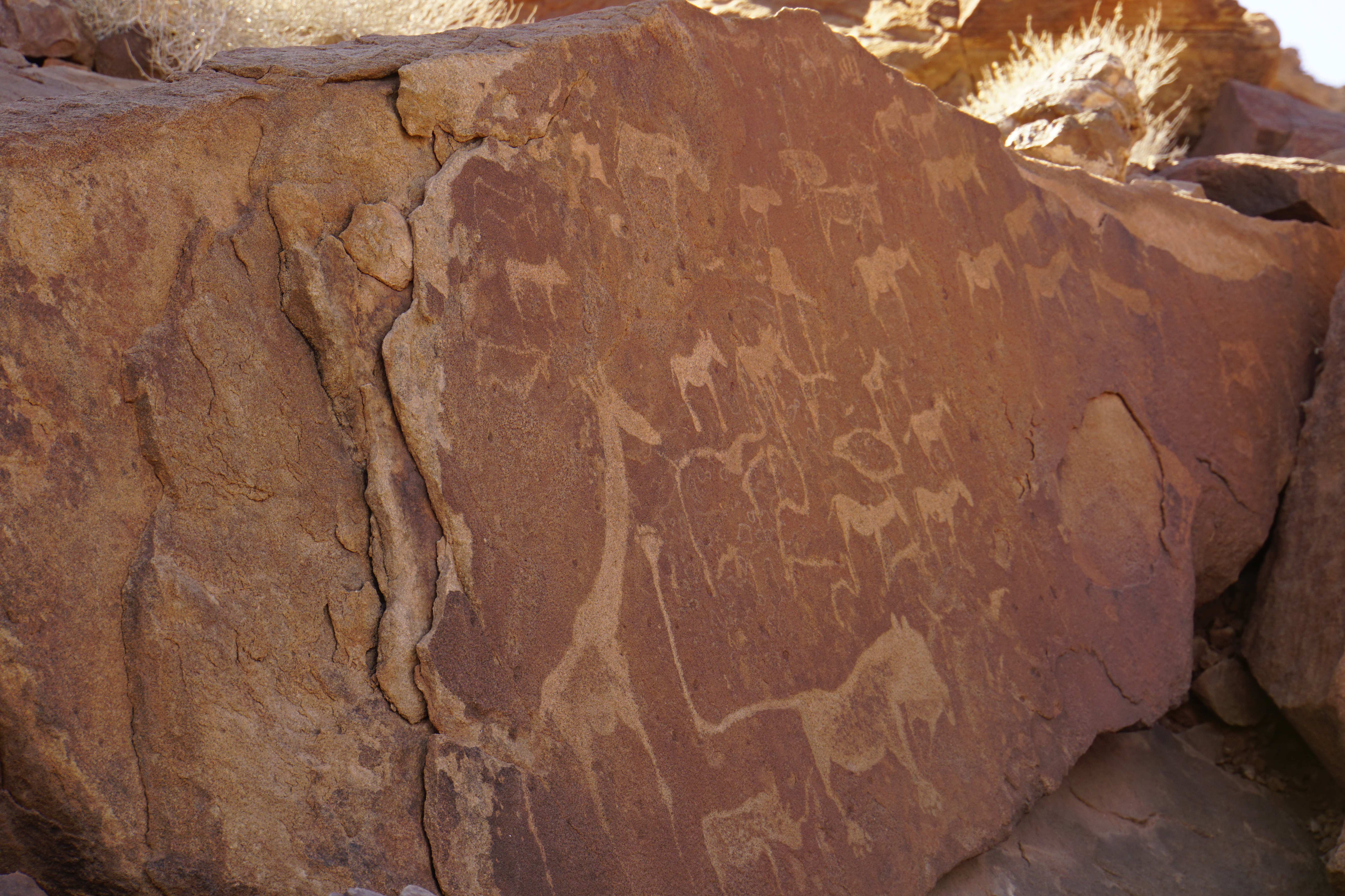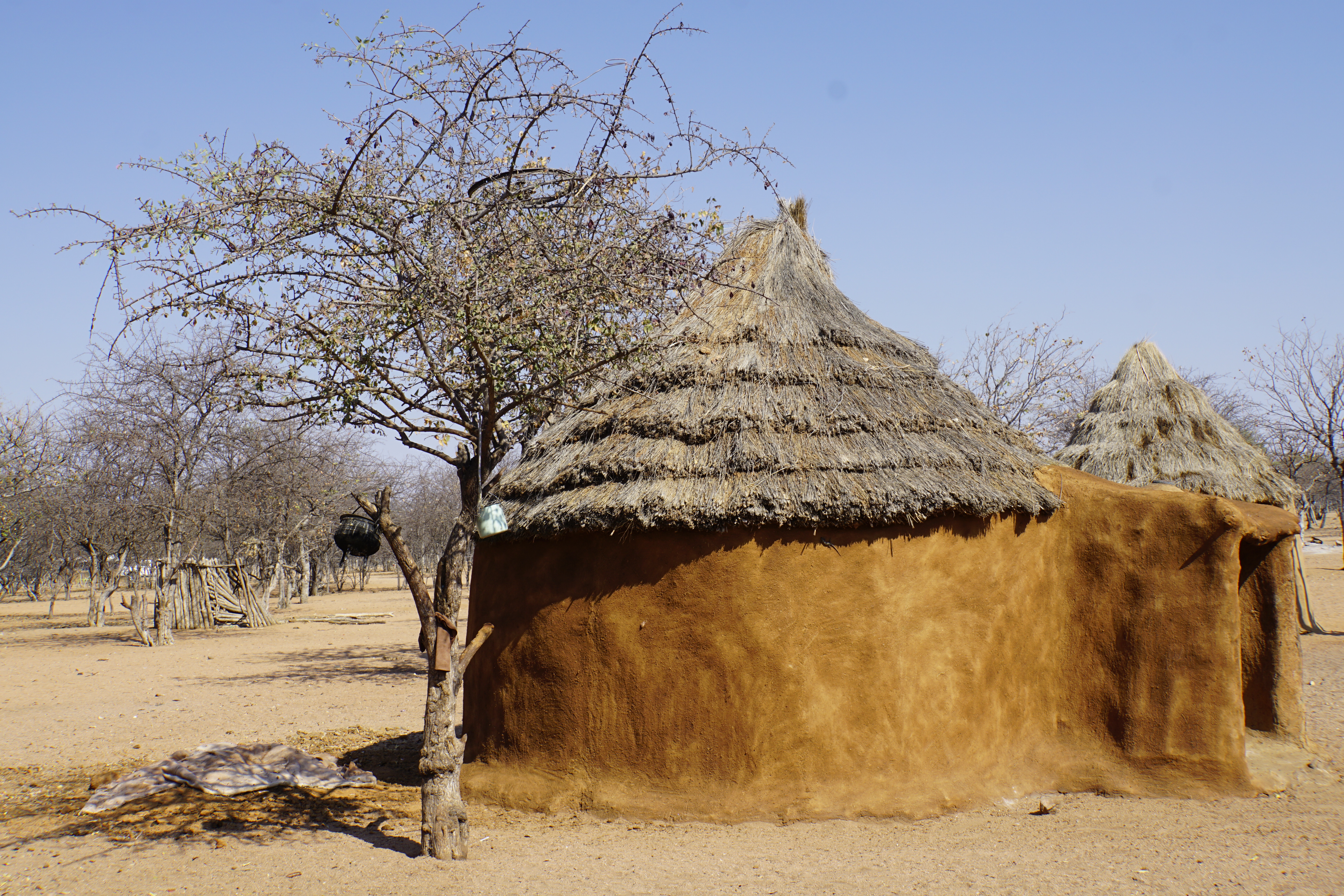 Saindo da costa, o caminho se tornou mais árido. Ao longo da estrada, pequenos vilarejos. As casas tinham uma construção principal ao centro e as moradias ao redor, como nas tribos da região. No caminho, paramos para visitar um sítio com desenhos rupestres.