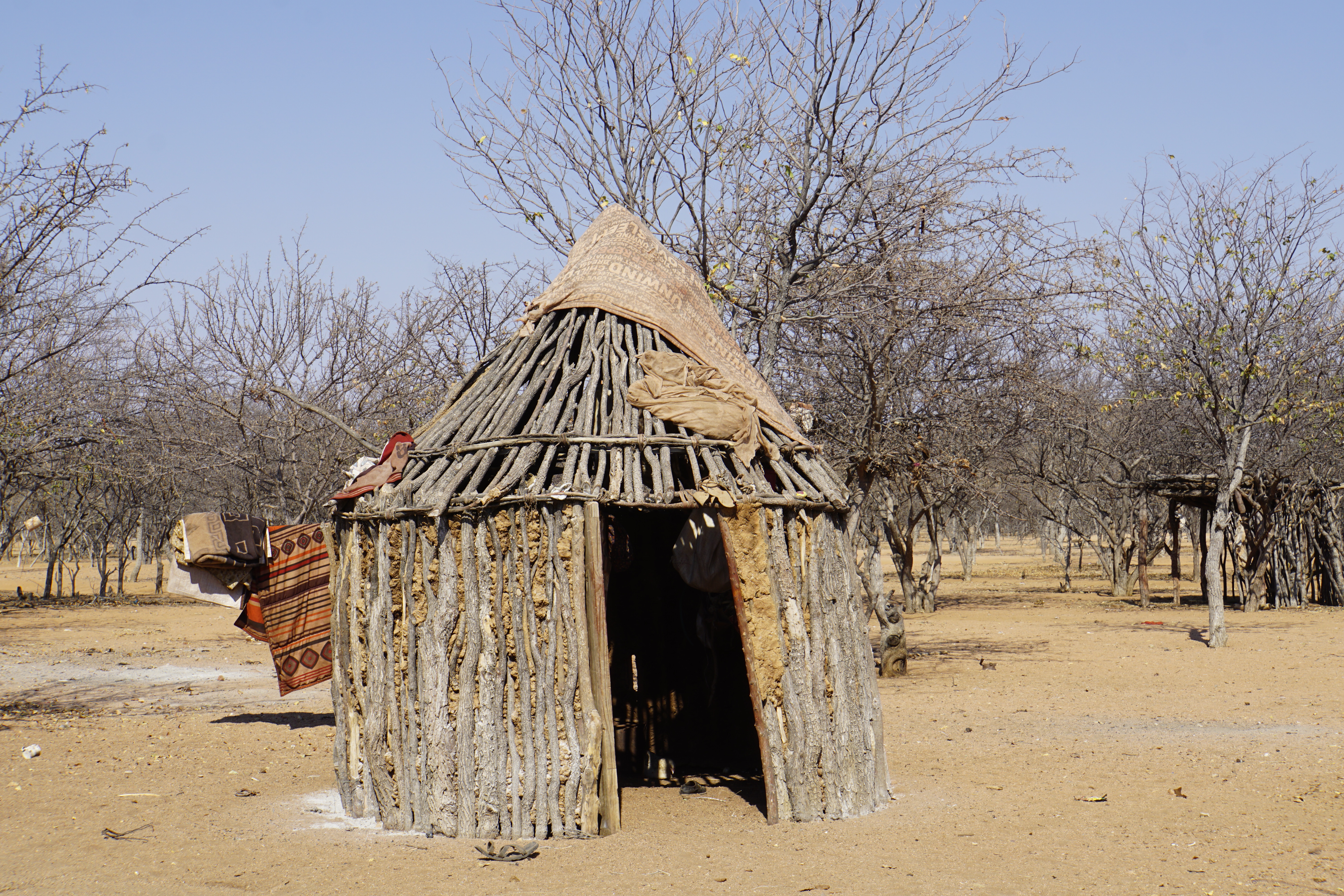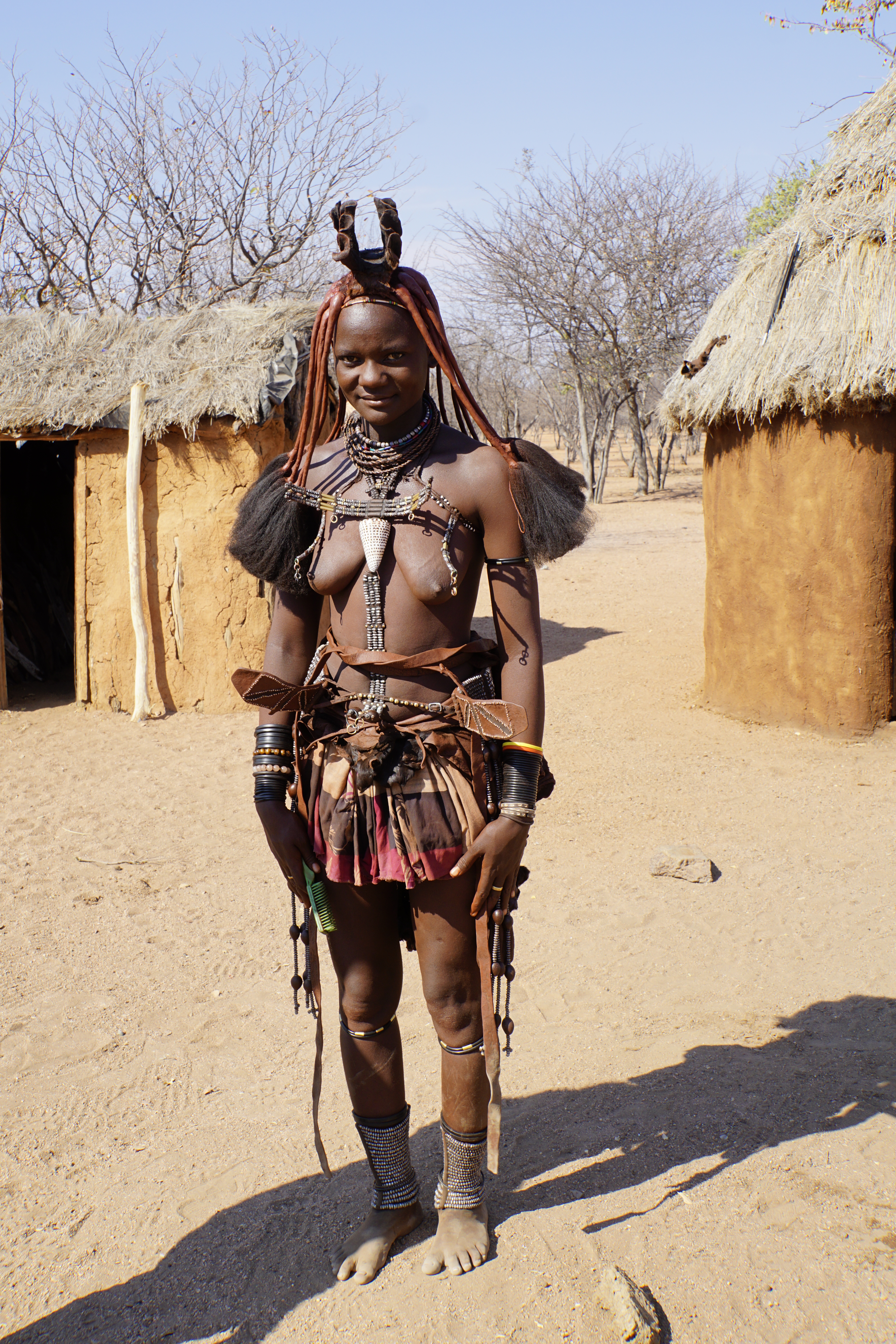 Paramos também para conhecer o povo Himba. Muitos já não moram mais na aldeia, mas se revezam para estar lá durante o dia, em função do turismo.