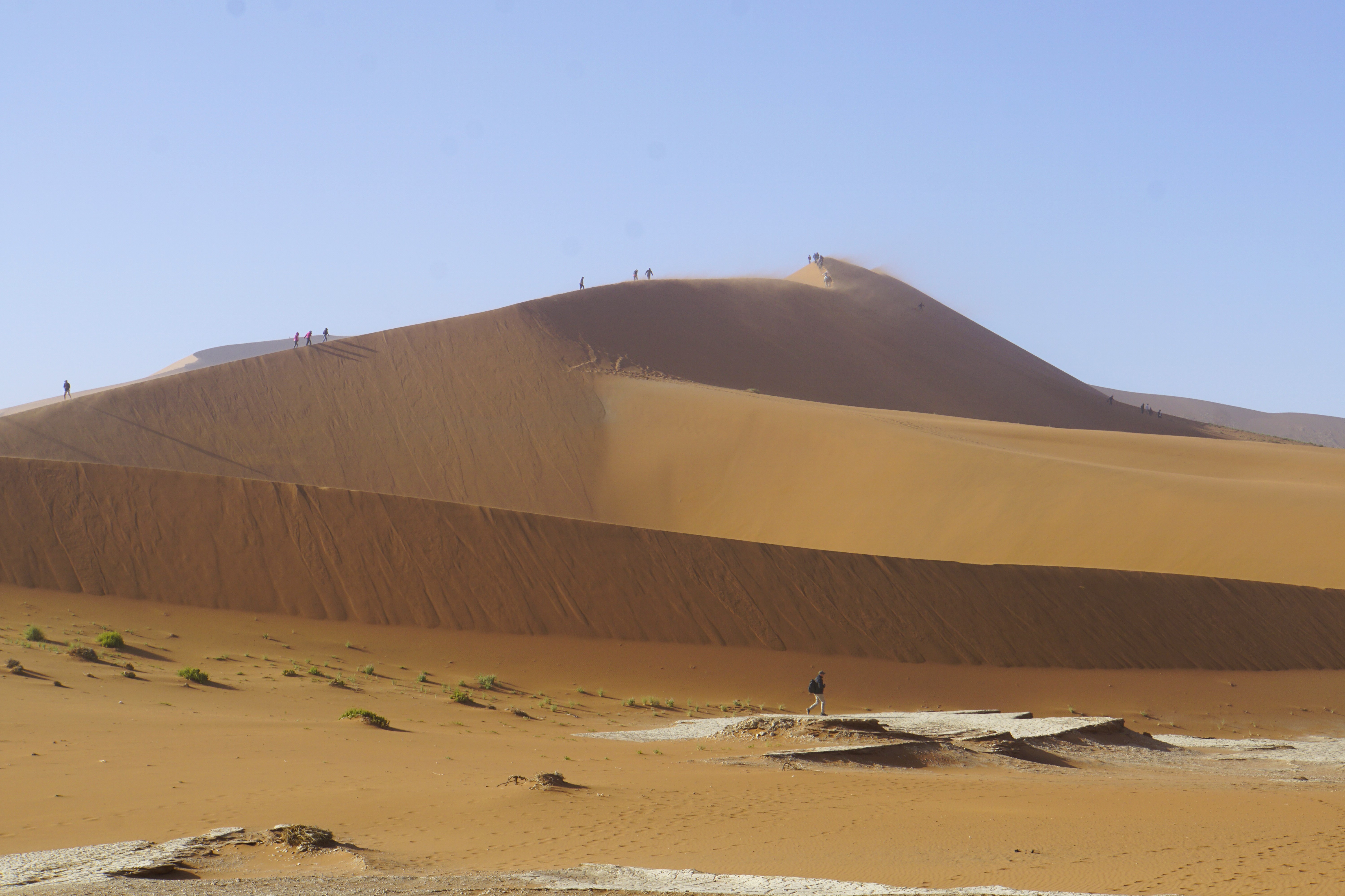 No dia seguinte, era dia de grandes emoções no deserto sul da Namíbia. Conhecemos Sossusvlei, que abriga os cartões postais da Namíbia, como a famosa Duna 45 e o Deadvlei. Trata-se de um imenso lago seco de sal e argila, rodeado por dunas vermelhas. So isso… rs… Depois, fomos conhecer o Sesriem Canyon.