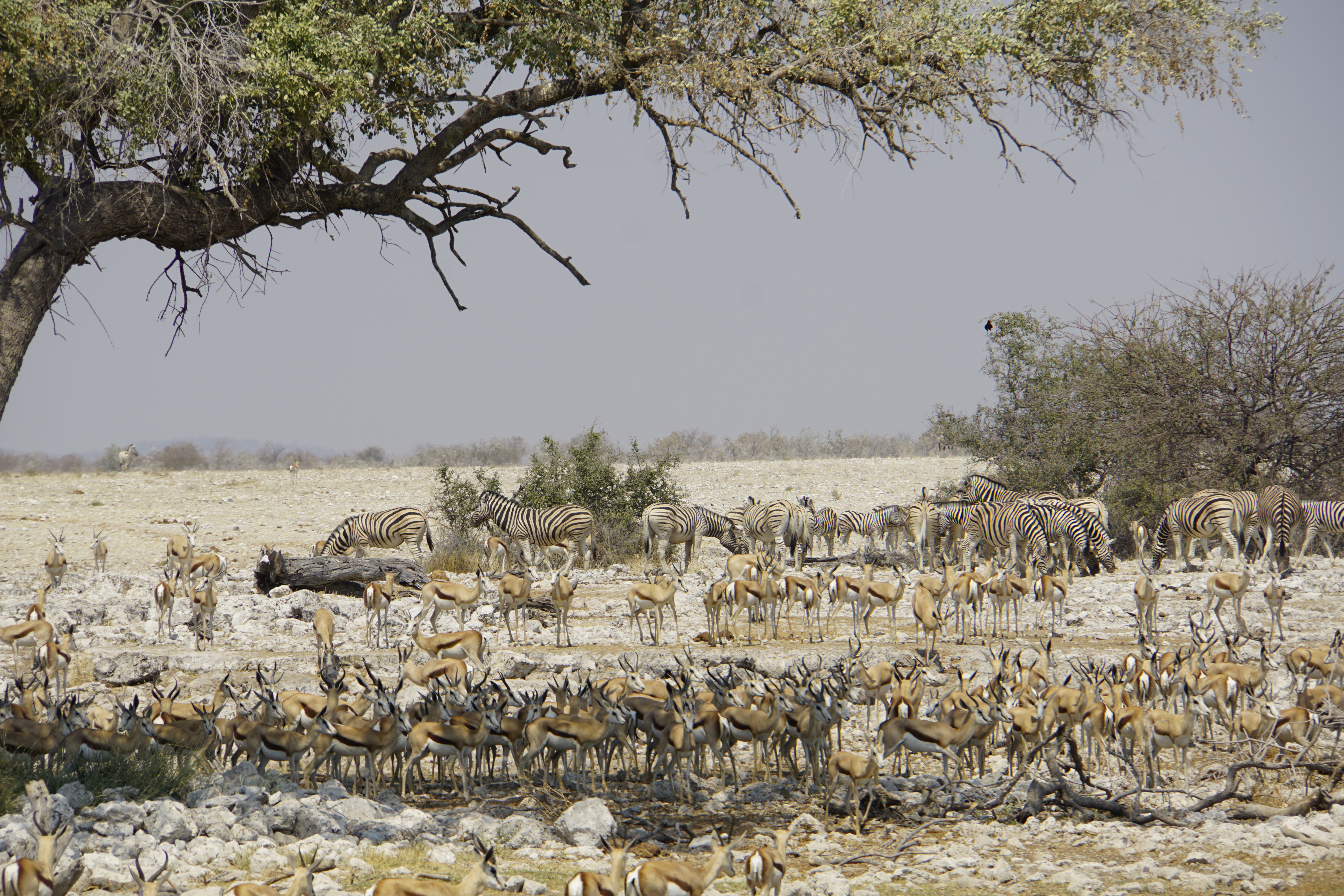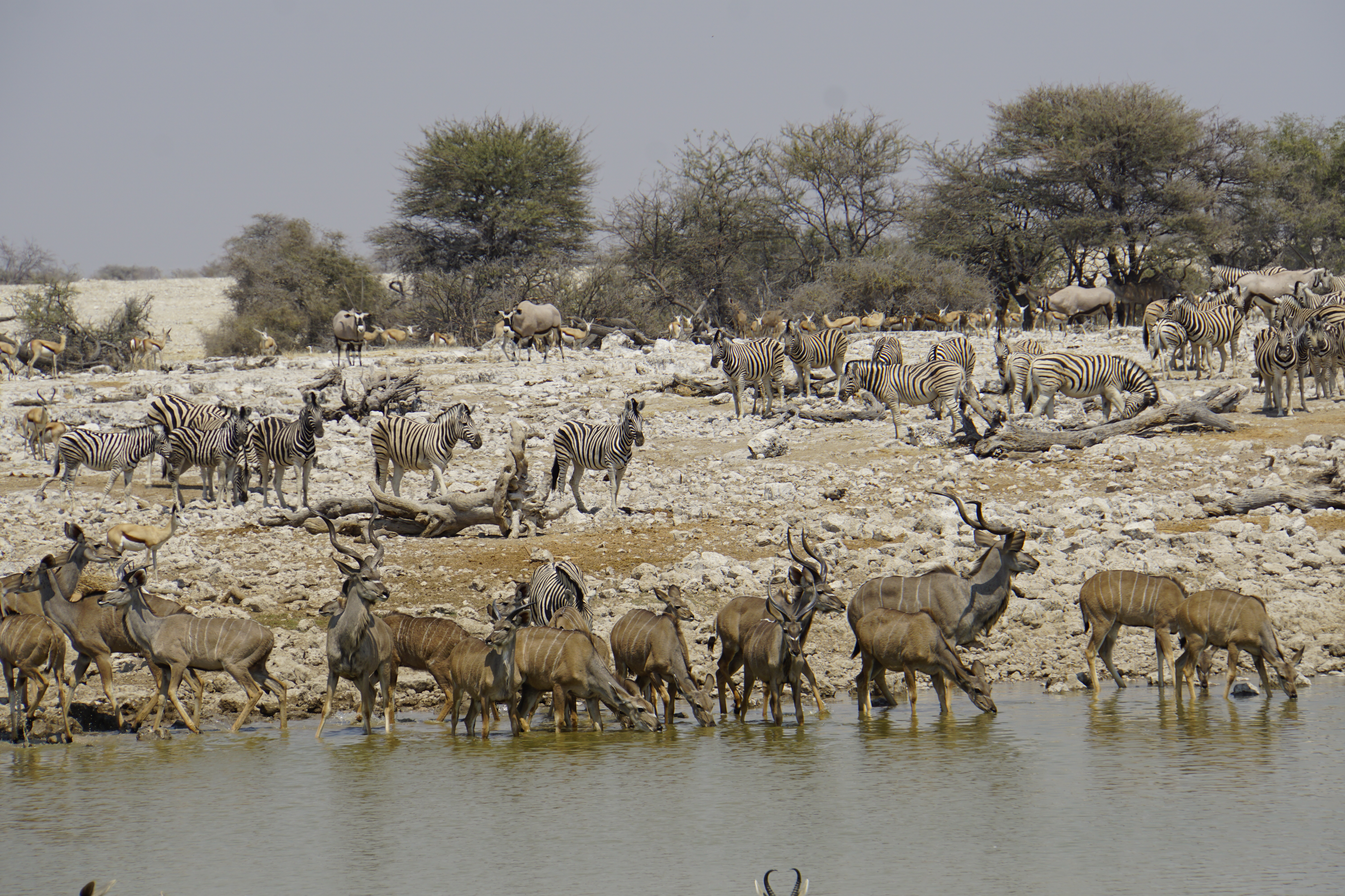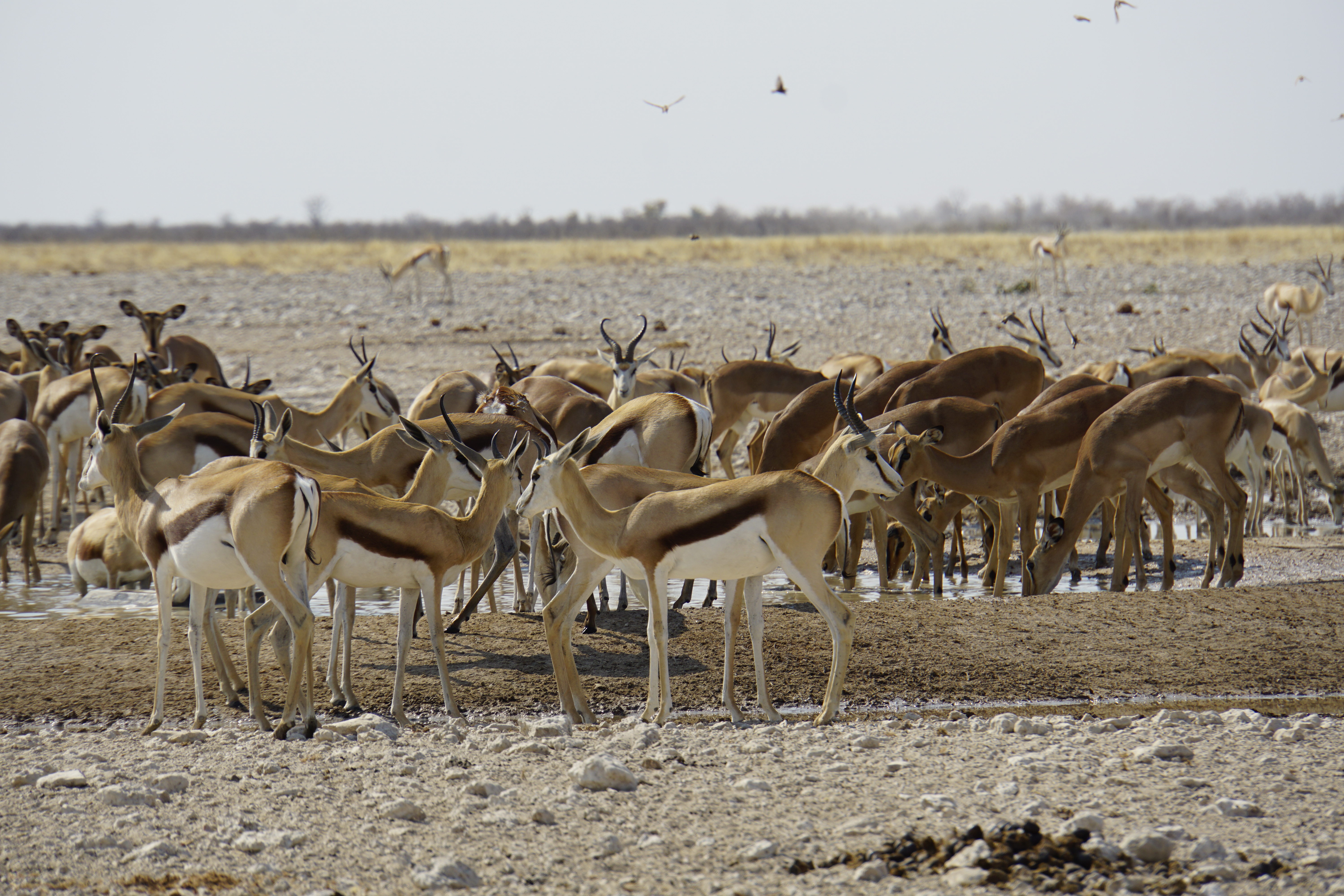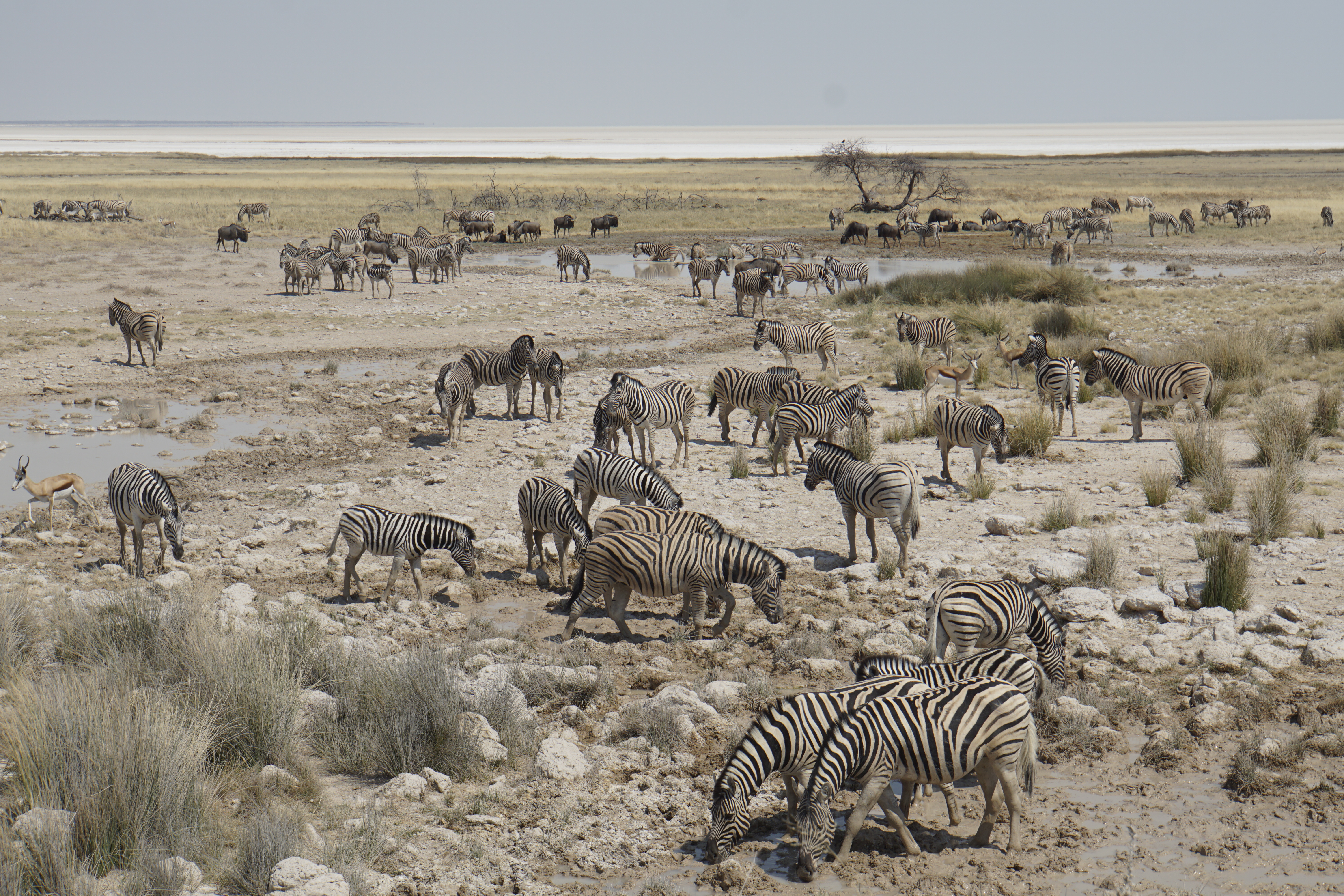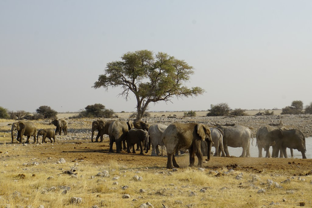 O Etosha é bastante árido e há algumas lagoas/ bolsões de água, alguns naturais e outros artificiais, para que os animais possam se hidratar. Como, é claro, há uma concentração grande de animais nestes locais, há muitos turistas que tem ressalvas à experiência do safari neste parque. Só que o Etosha tem uma área de 22000m² (23% da área é salar!) e, sinceramente, eu não tive essa sensação. Há animais nos lagos mas também ao longo de todo o parque.