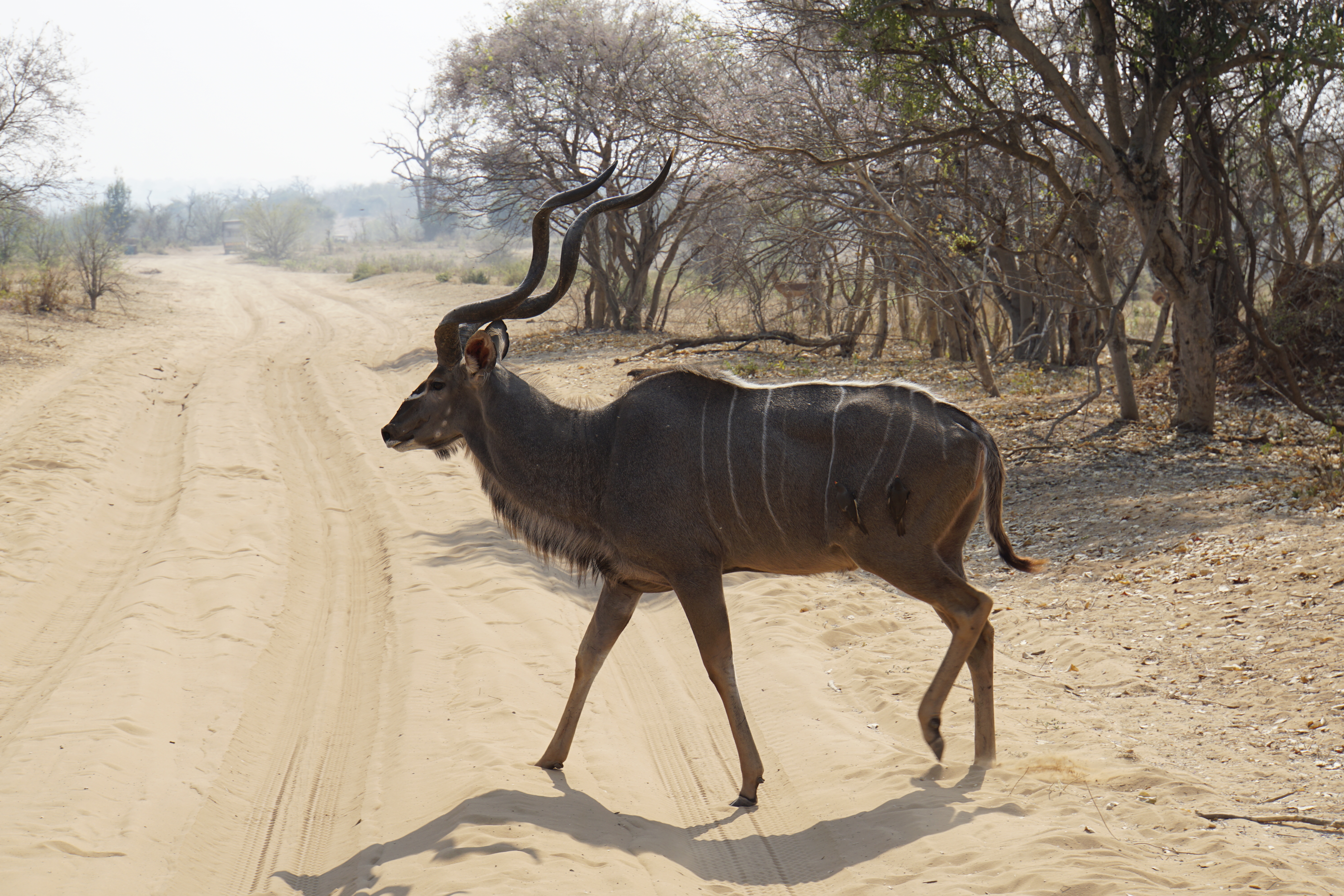 À esta altura já estávamos totalmente realizadas com a viagem. Vimos muitos animais. Apenas o leopardo não conseguimos avistar. Não por falta de esforço do guia, que ficou muito tempo esperando, sem sucesso, um deles descer de uma árvore (devido a copa bem fechada, não deu pra ver nada).