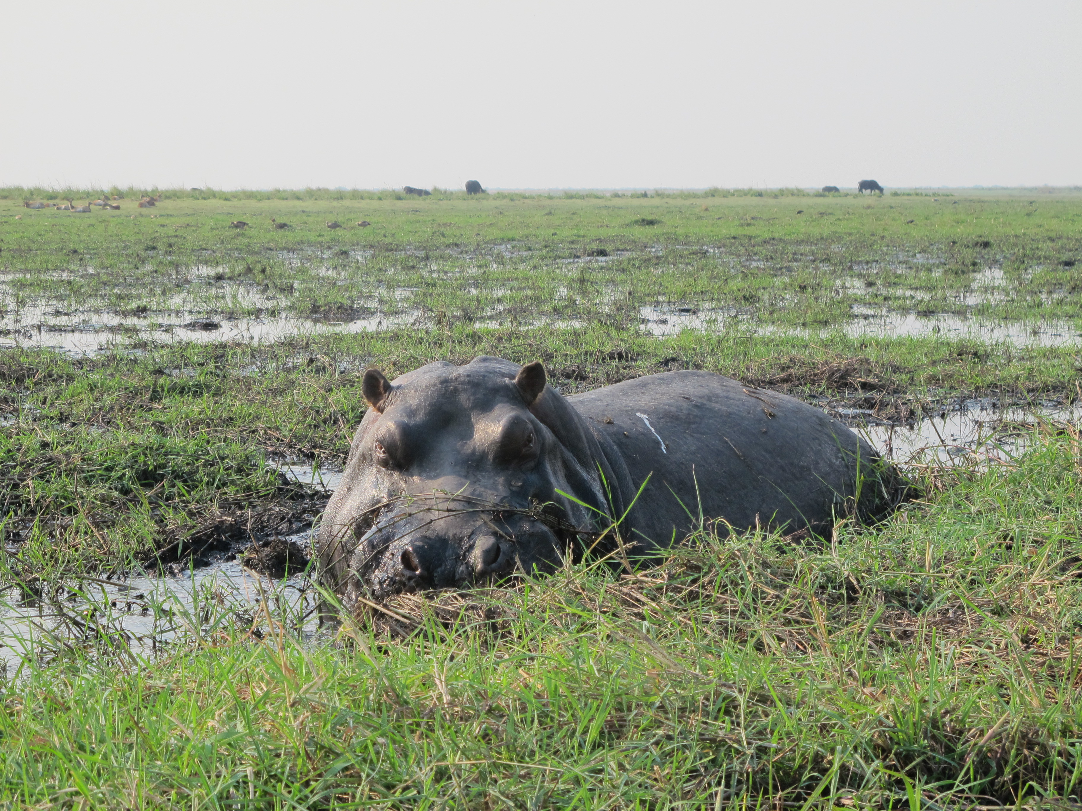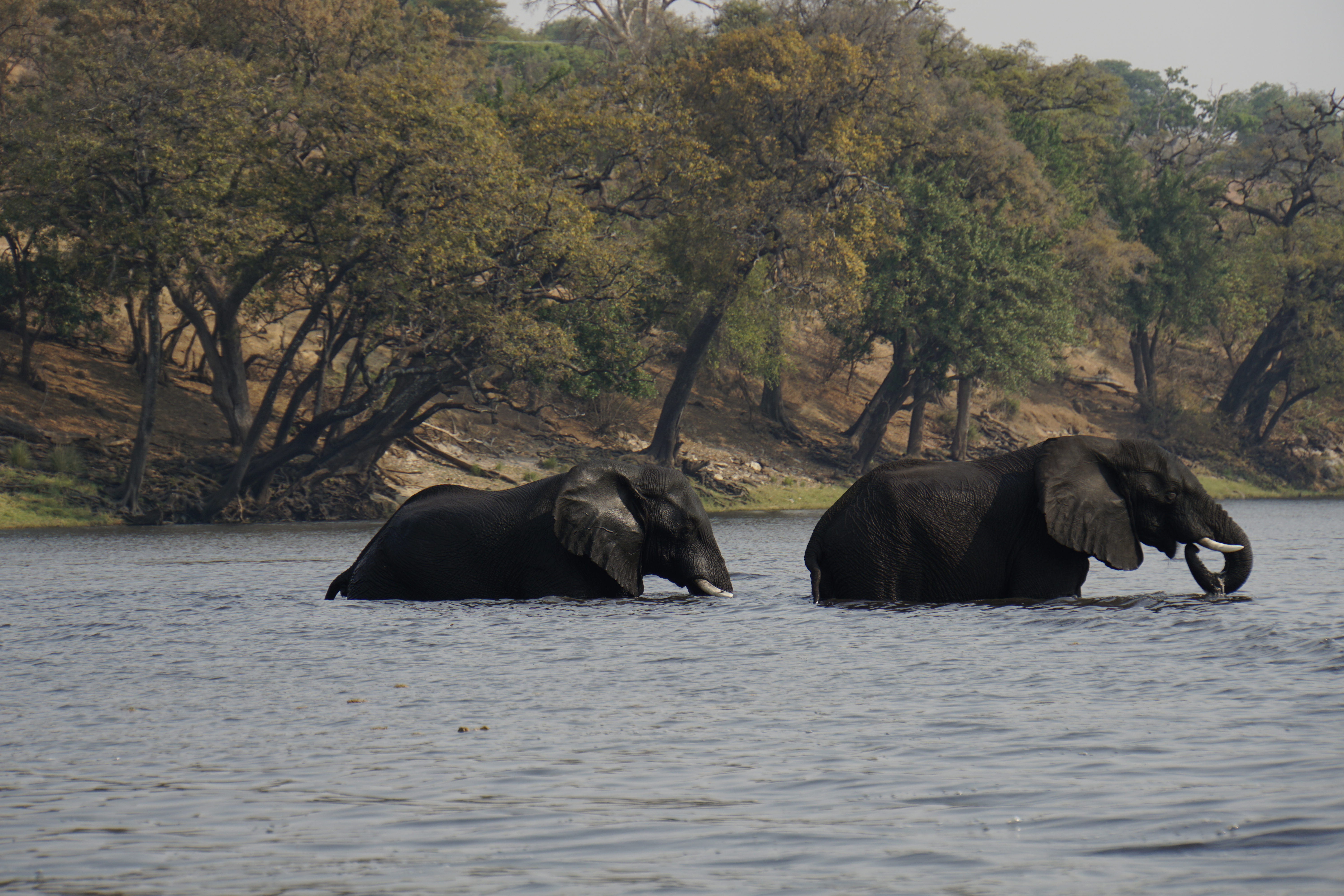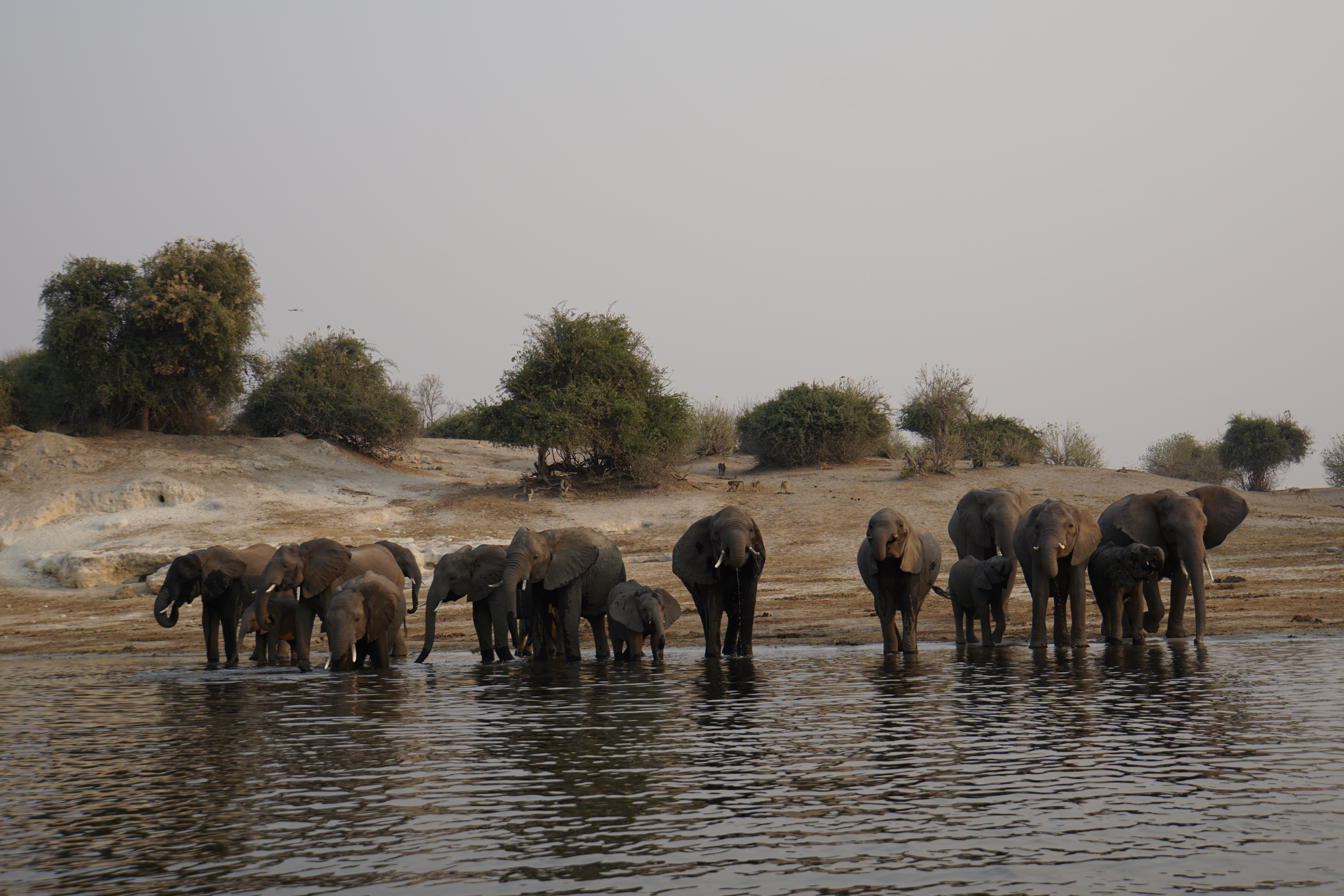 E então, felicíssimas, nos despedimos a caminho de mais um ponto de safari, no Chobe National Park, em Botswana. Este camping era ao lado de um rio e andamos de barco ao longo dele. Nas suas margens, também era possível observar a vida local. As vestes, os banhos no rio, os baldes de água na cabeça. A vida em outro ritmo. E, sim, mais um por do sol incrível. Por lá o sol se pintava de vermelho sangue. Ficou na memória pra sempre, porque as fotos não conseguiram capturar.