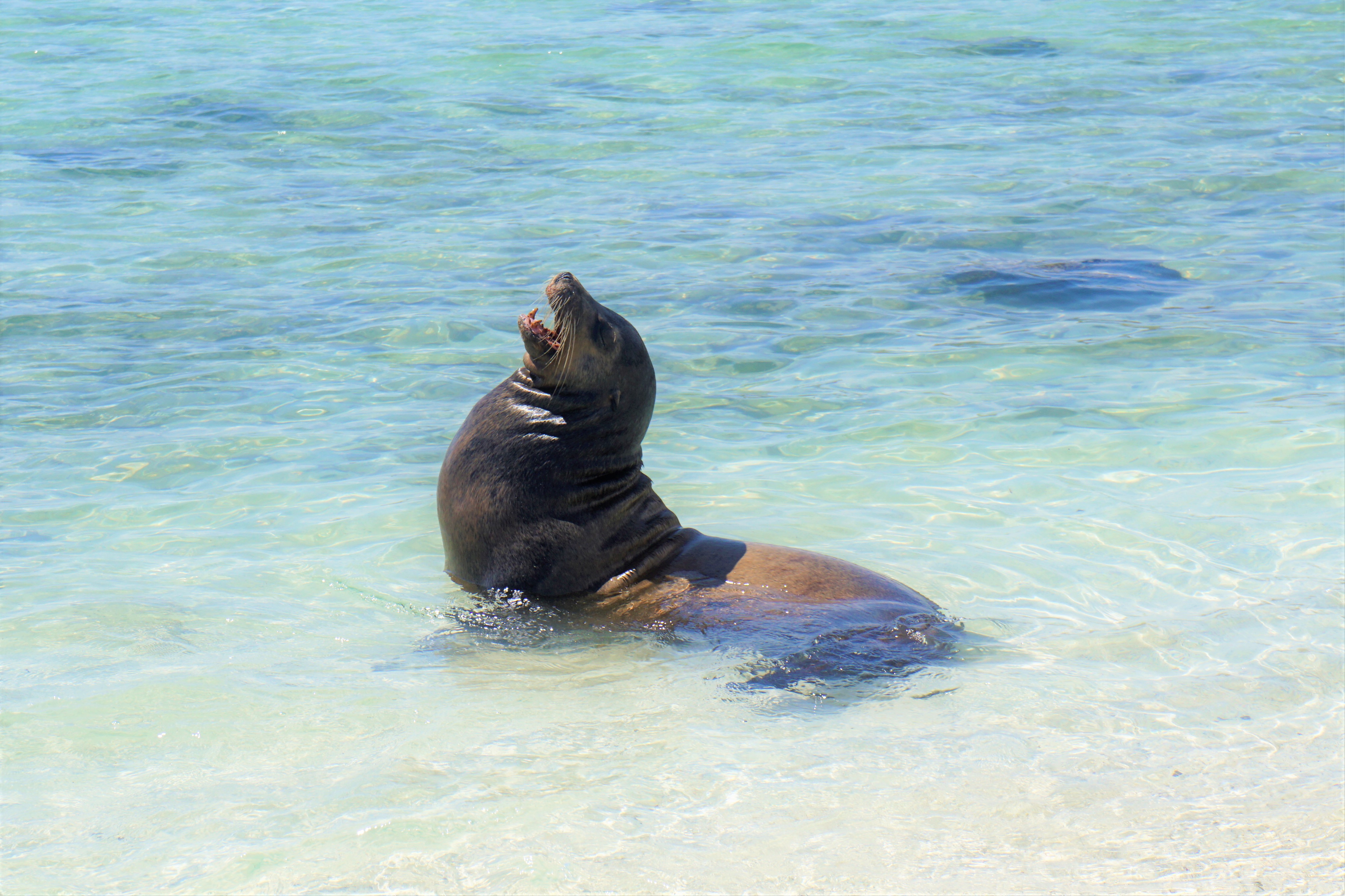 Neste dia exploramos a ilha de San Cristobal. De manhã, conhecemos a espetacular Isla Lobos. Lá, primeiro fizemos snorkel junto aos leões marinhos, super amistosos, que vinham nadar e brincar conosco. Nossa, foi demais!