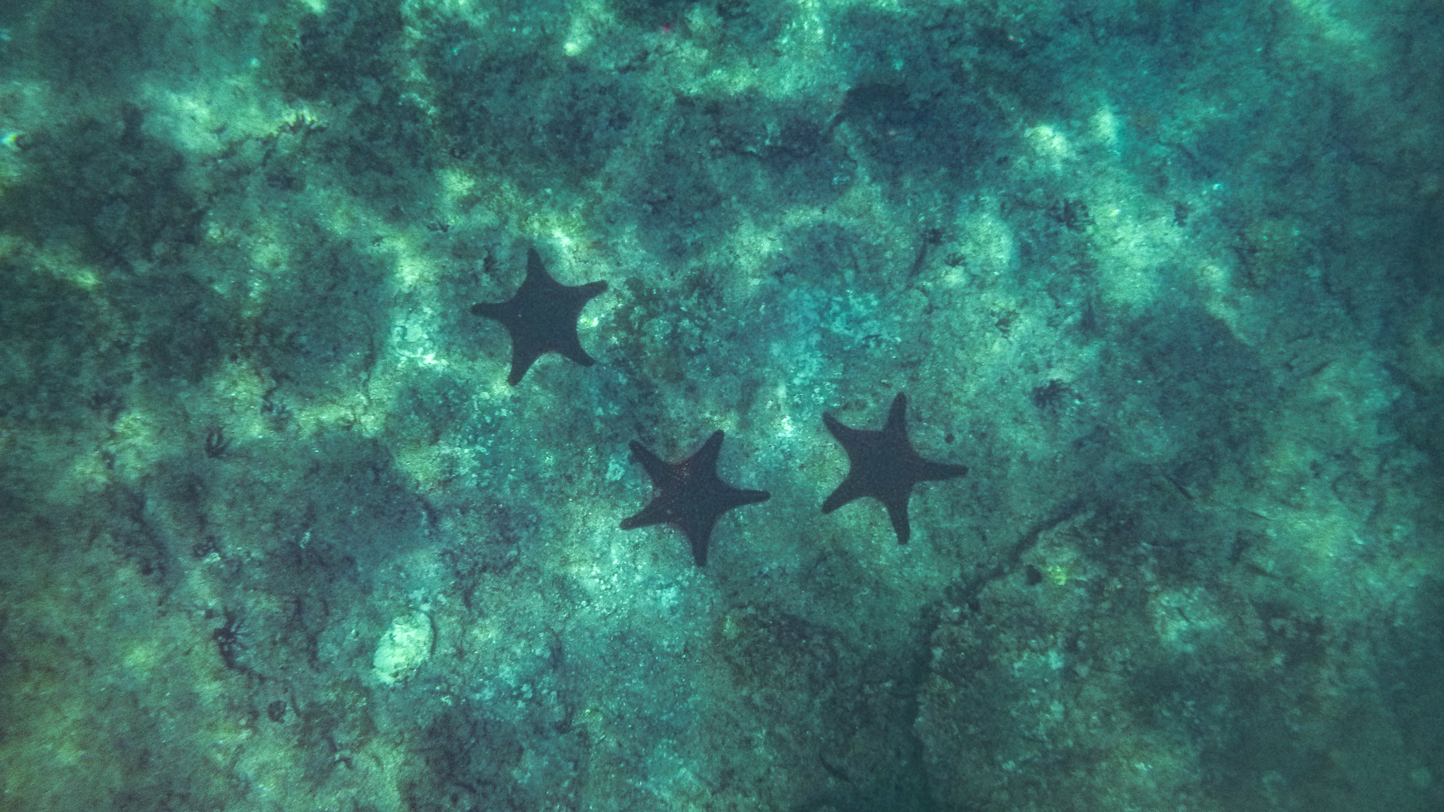 Oba! Mais um dia de novos encontros em Galápagos. Neste dia visitamos Darwin Bay e El Barranco. Teve caiaque (sempre muito relaxante!) e snorkel. O mar não estava com uma visibilidade boa, então apesar do esforço do guia, não conseguimos ver o tubarão martelo. Vimos muitos corais, peixes, arraias e estrelas do mar.