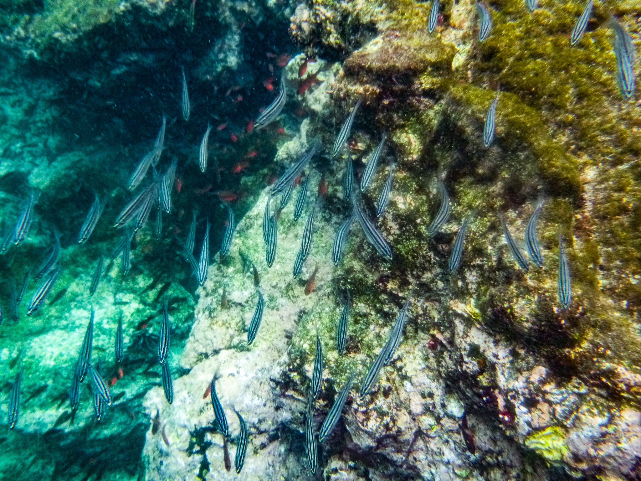 Este dia teve caiaque, snorkel e caminhada. No mar, vimos os nossos primeiros tubarões da viagem, além de muitos peixes. Infelizmente a minha subaquática deixou muito a desejar, então as fotos não refletem a beleza do que eu vi no mar de Galápagos.