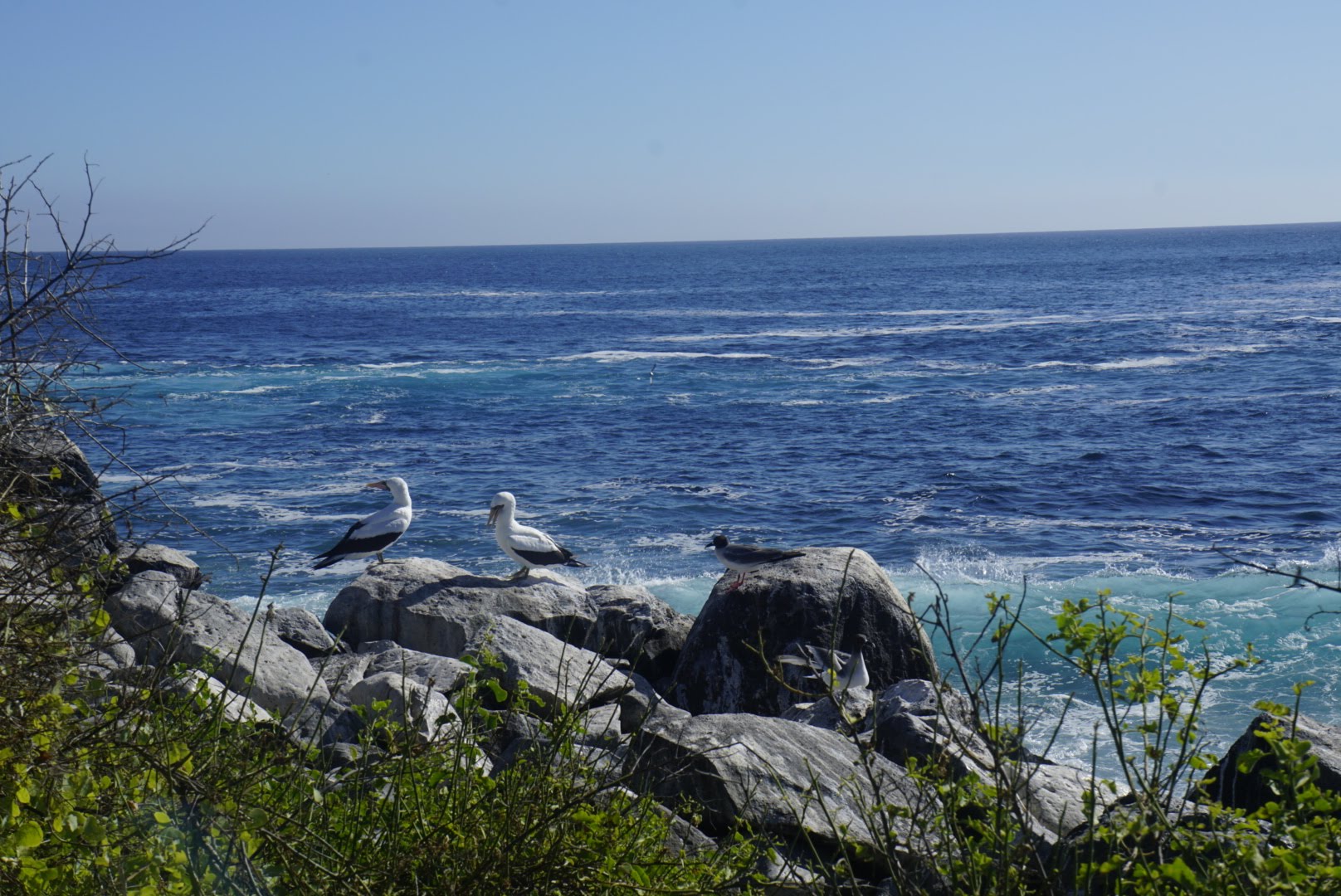 Depois do almoço, houve mais uma caminhada, agora em Punta Suárez. Lá, vimos mais leões marinhos e lagartos, além de avistar muitos pássaros, incluindo os nazcas e os albatrozes (que estavam chocando!). A paisagem de rochas vulcânicas e mar de um azul profundo completavam o cenário!